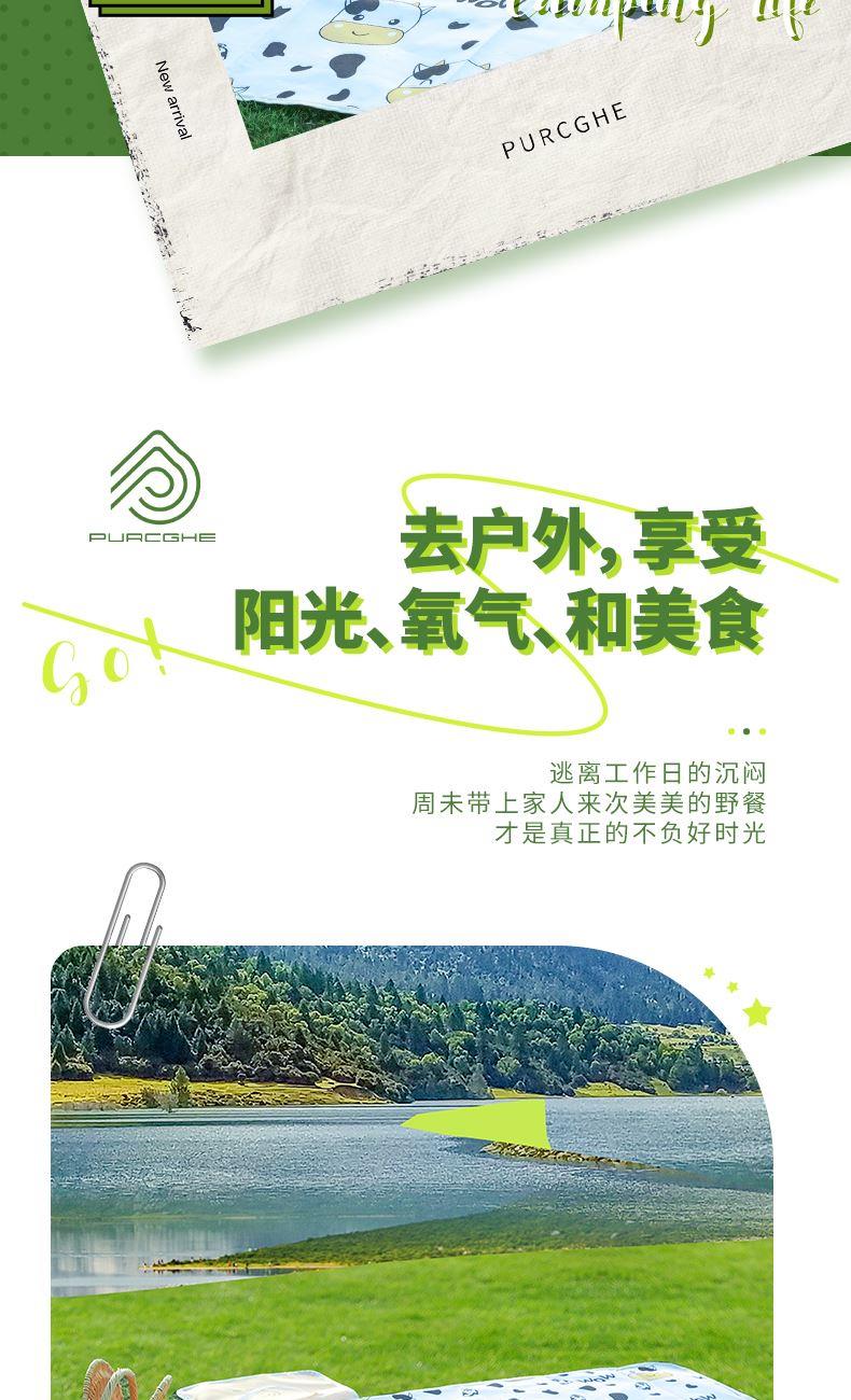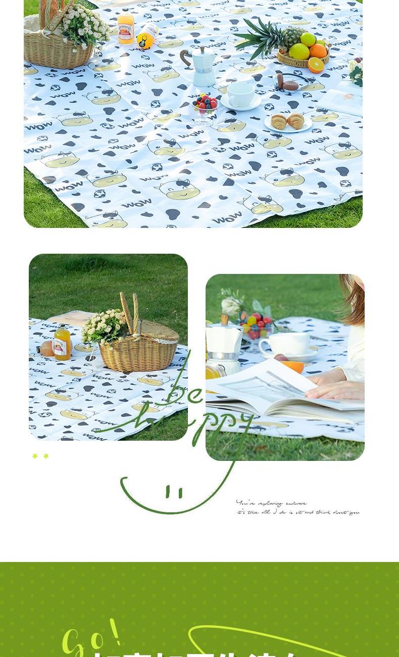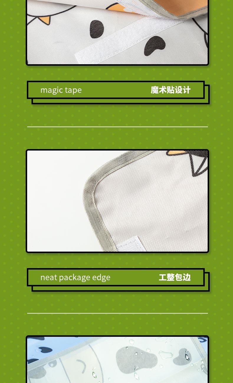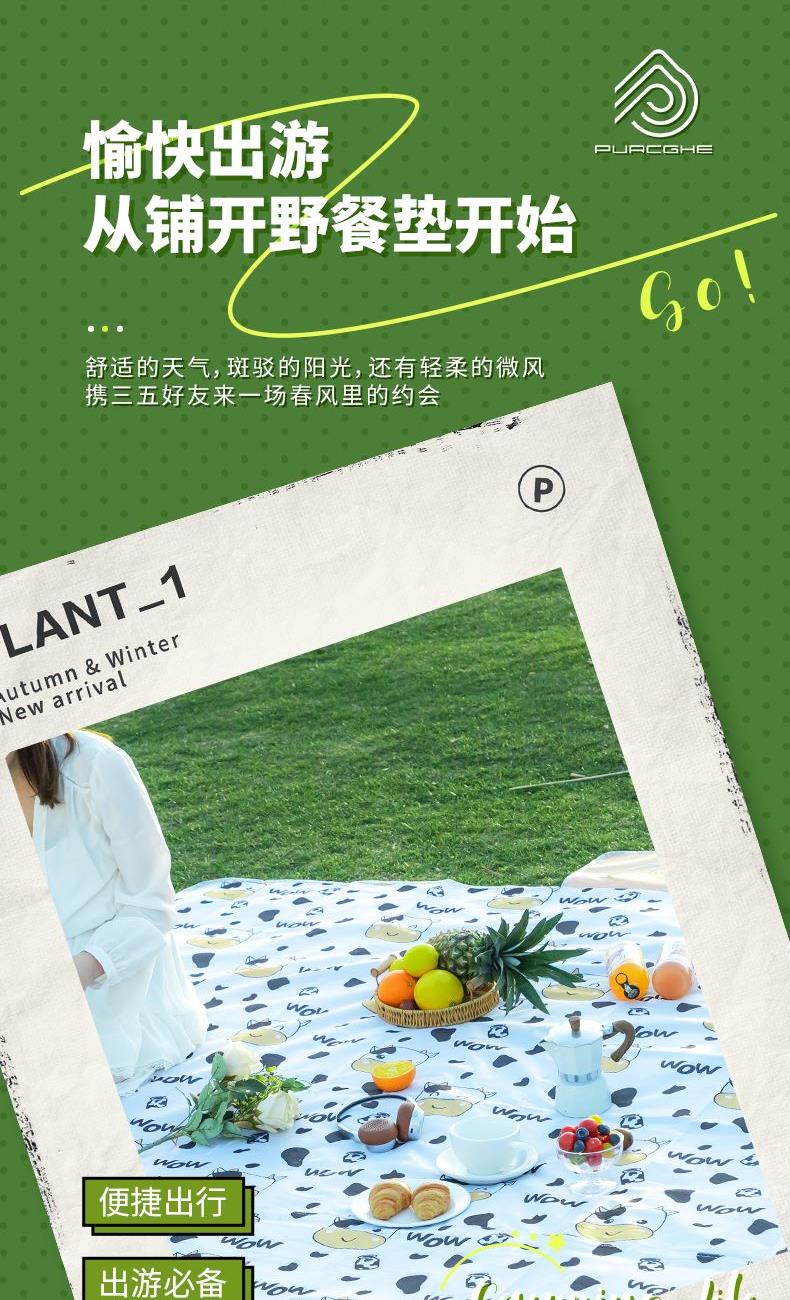 产品特点说明 : 一体式收纳携带方便 轻松出行 加厚防潮 便携易收纳 易清洗 加密加厚面料柔软舒适 防水防潮不易粘草 避免渗水遇水不吸收