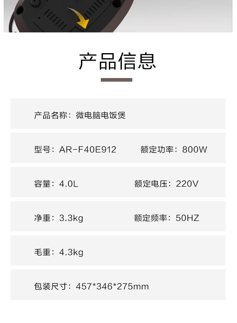 爱仕达AR-F40E912智享系列电饭煲