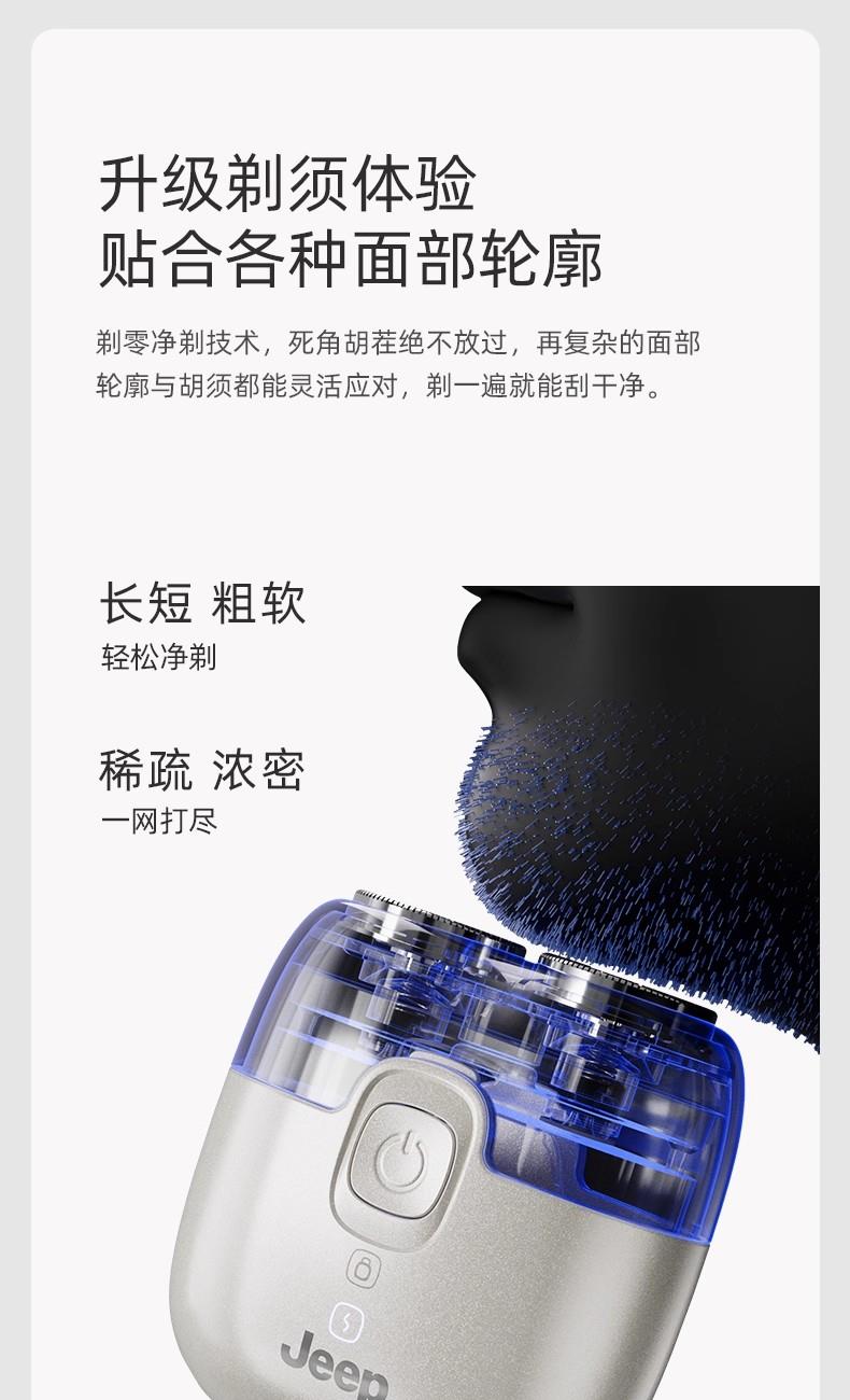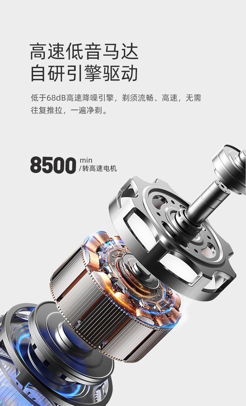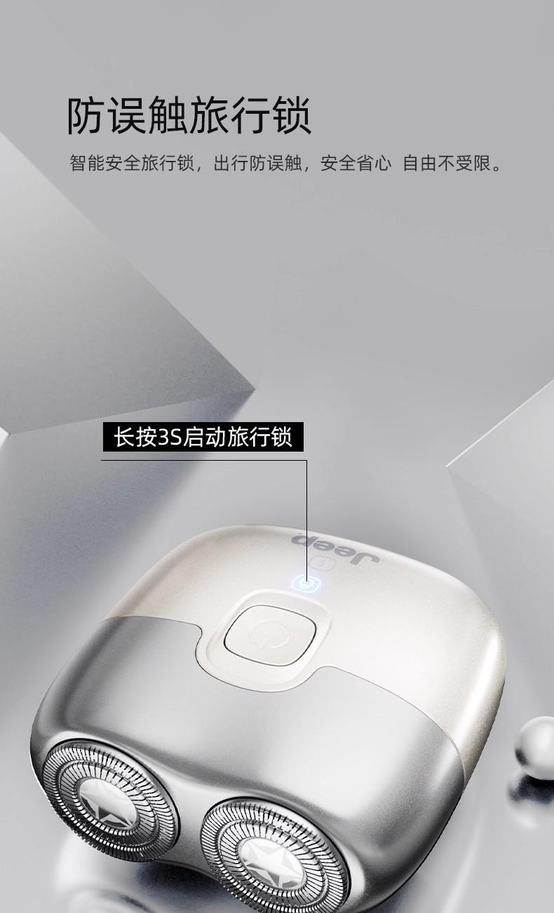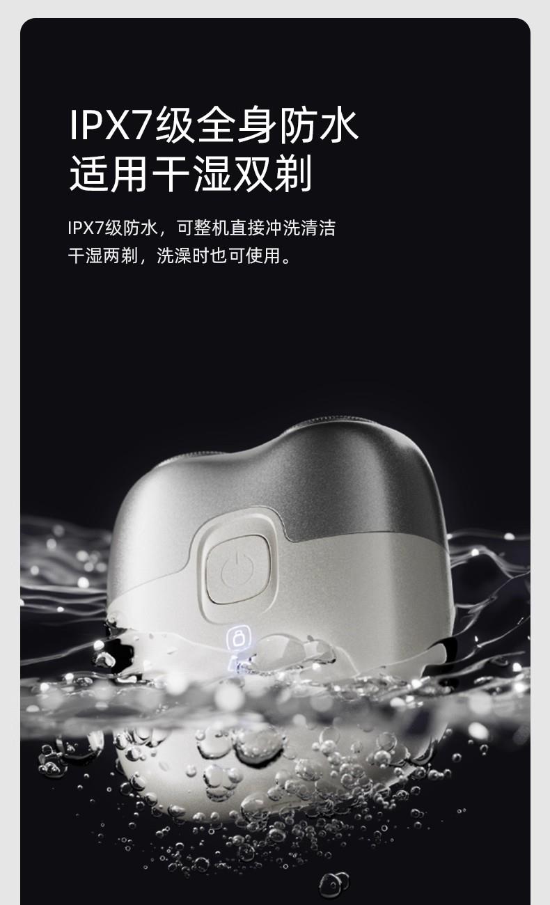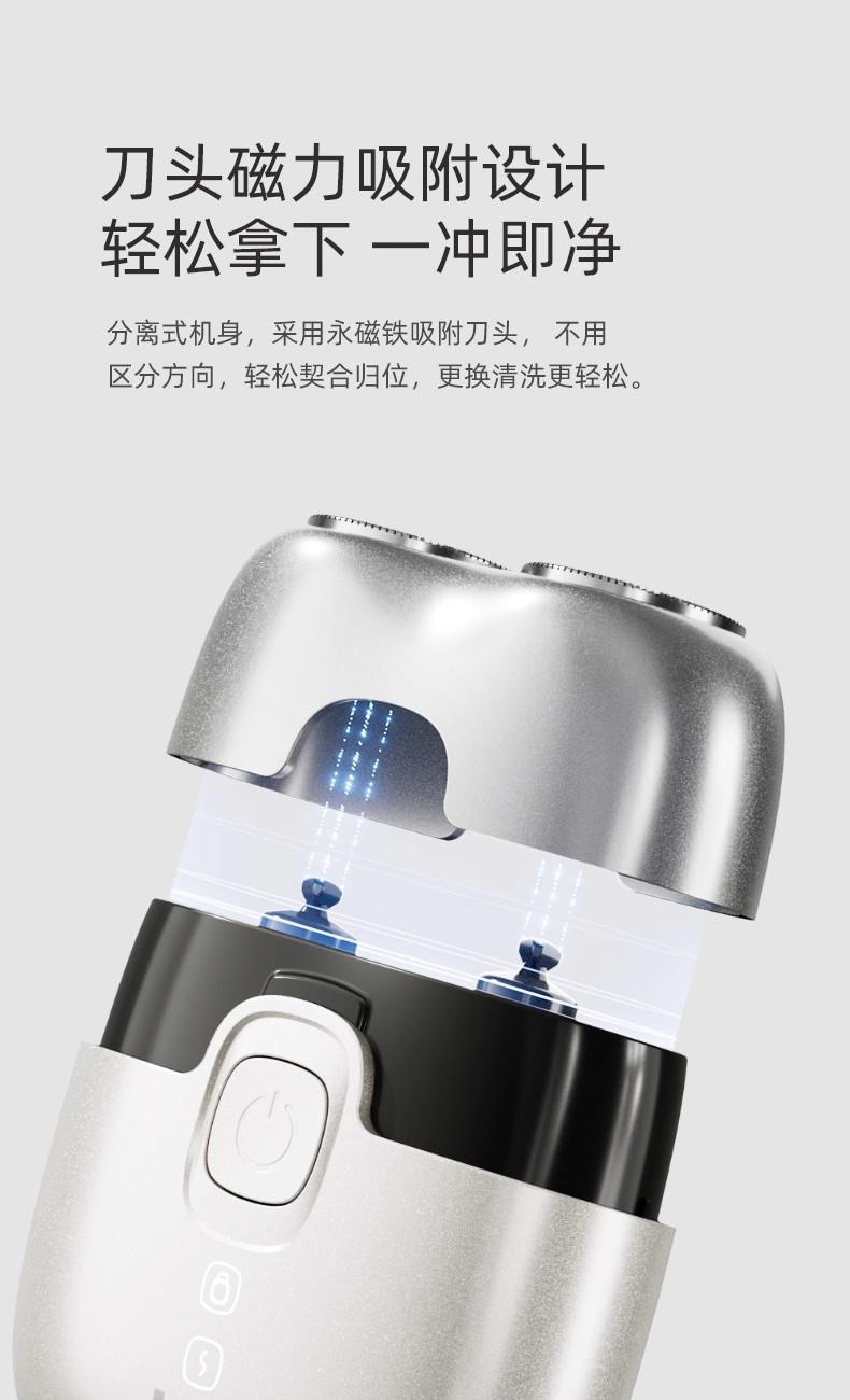 1、双环浮动刀网,360°贴面剃须 2、智能防夹须,稳定利落无拉扯,减少肌肤刺激 3、整机IPX7浸泡级水洗,一冲即净,干湿双剃 4、磁吸式刀头,超强磁力吸附设计,更换清洗更轻松 5、8500转高转低音马达,强劲动力,动能十足 6、电量指示灯(充电、低电、电满提示) 7、Type-C插口,支持co C充电,1.5小时快充,80分钟长效续航 8、即插即用,清爽无须等待 9、智能双重保护安全旅行锁,防触控,自保护 10、mini便携,出门在外也能保持面部清爽。