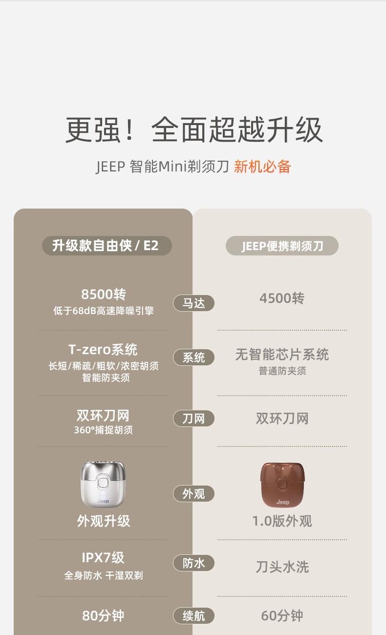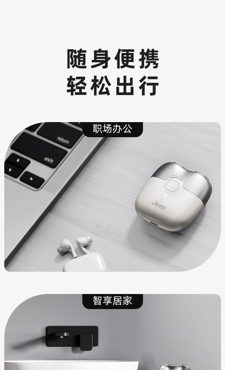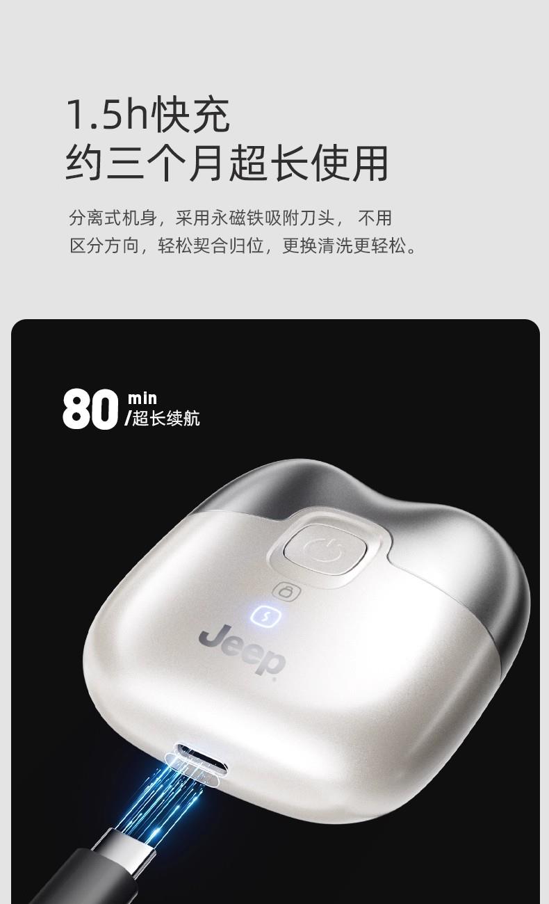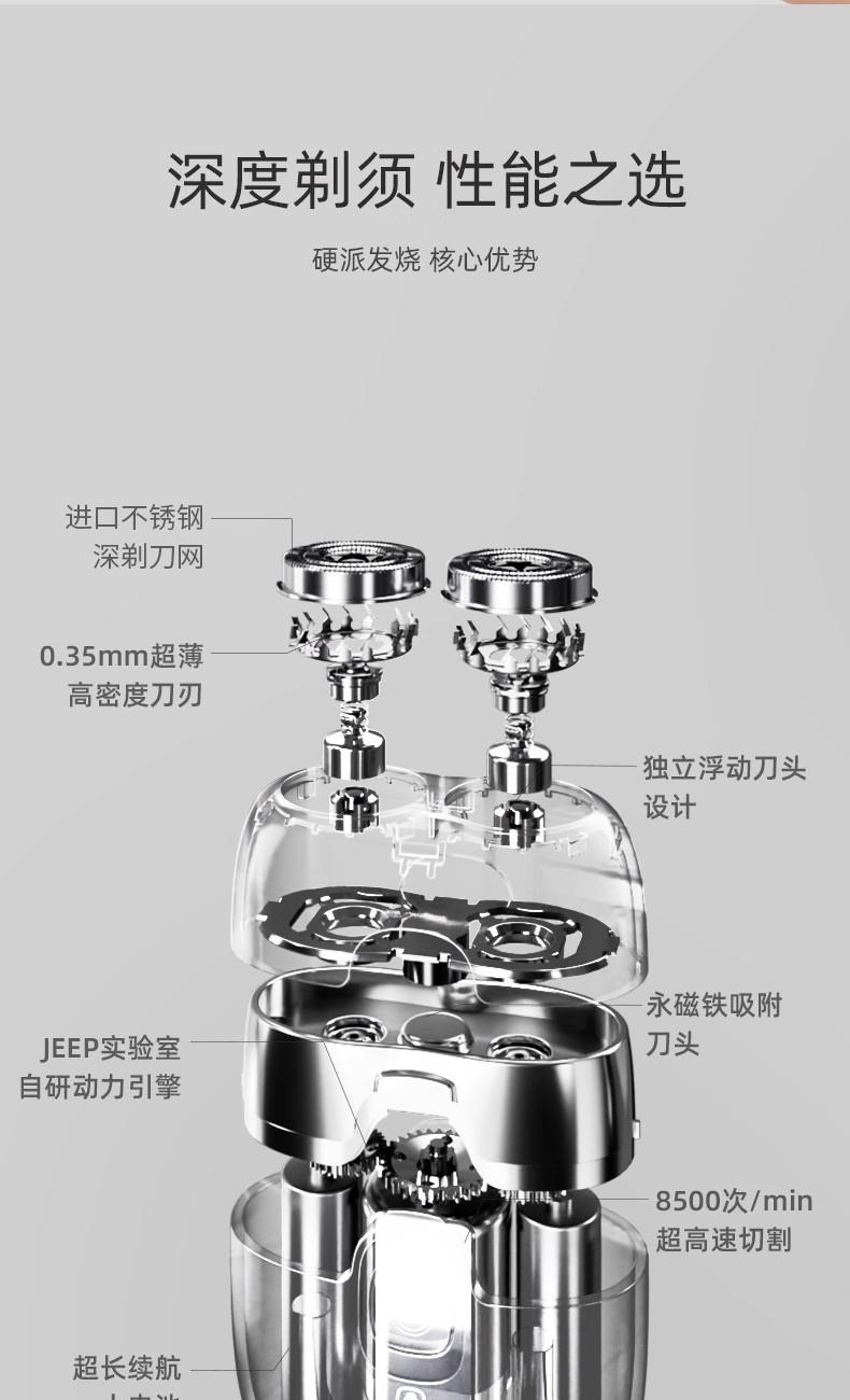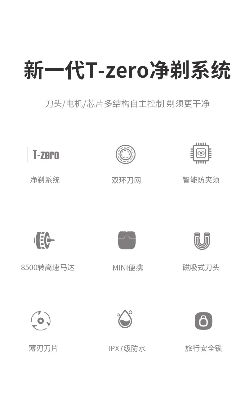 1、双环浮动刀网,360°贴面剃须 2、智能防夹须,稳定利落无拉扯,减少肌肤刺激 3、整机IPX7浸泡级水洗,一冲即净,干湿双剃 4、磁吸式刀头,超强磁力吸附设计,更换清洗更轻松 5、8500转高转低音马达,强劲动力,动能十足 6、电量指示灯(充电、低电、电满提示) 7、Type-C插口,支持co C充电,1.5小时快充,80分钟长效续航 8、即插即用,清爽无须等待 9、智能双重保护安全旅行锁,防触控,自保护 10、mini便携,出门在外也能保持面部清爽。