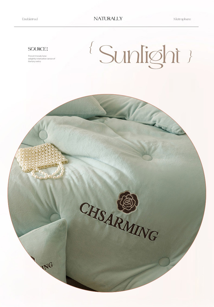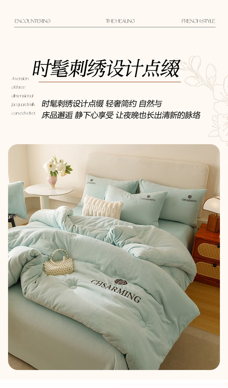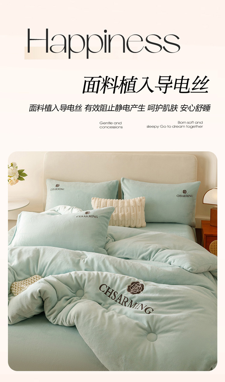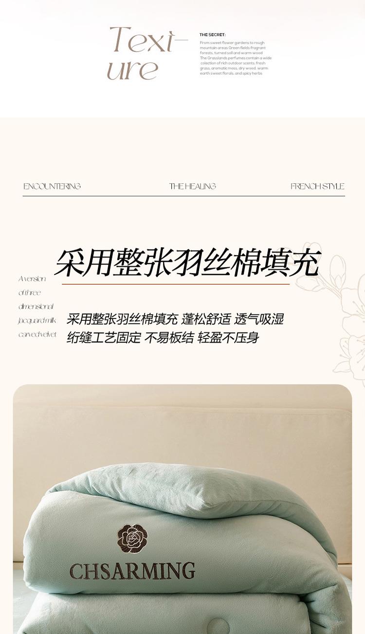1:牛奶绒加厚保暖冬被系列{贴身透气 温暧舒适 触感柔软) 2:甄选加厚保暖牛奶绒面料 透气吸湿 软糯亲肤贴合身体所触一处皆是温暖 顷刻沦陷 3:采用整张羽丝棉填充 蓬松舒适 透气吸湿 绗缝工艺固定 不易板结 轻盈不压身 4:尺寸:200*230cm*1 重量:3kg 包装:彩盒/礼袋