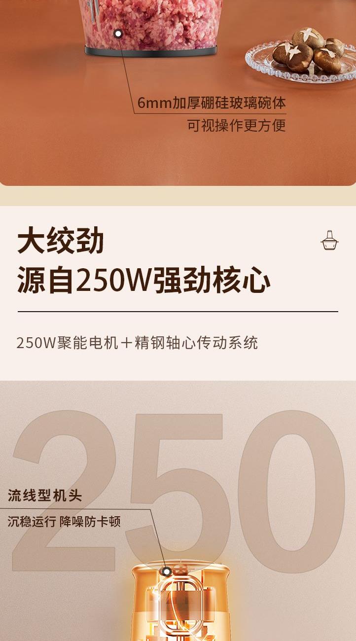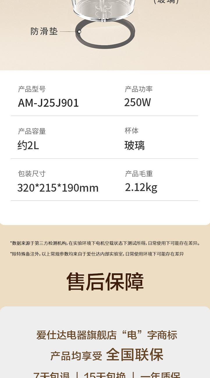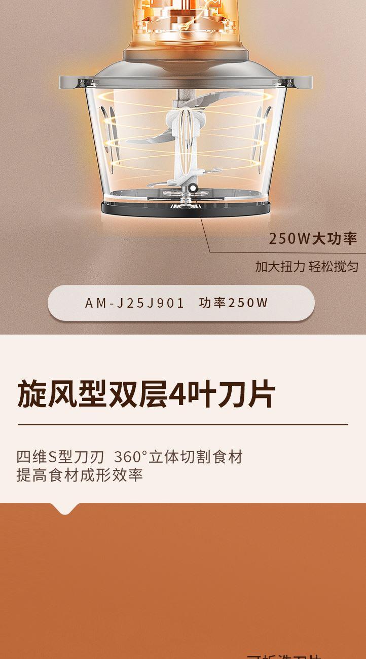 功率– 250W 容量:1.8L 内箱 -320*215*190mm 外箱 - 660*450*410mm 净重 - 16.8kg 毛重 – /kg 两档调速 全家满足 双层四刀 250W大功率 304不锈钢 易清洗