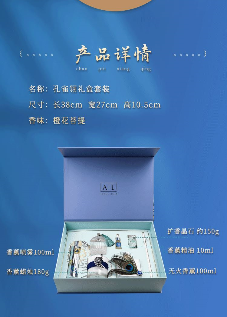 香薰蜡烛 克重: 180g 无火香薰 净含量: 100ml 香薰喷雾 净含量: 100ml 香薰精油 净含量: 10ml 扩香晶石 克重:约150g 橙花菩提 菩提树下 ,橙花、鸢尾、茉莉竞相绽放 ,隐约 透出香根草的青香 ,带来无法言喻的喜悦。