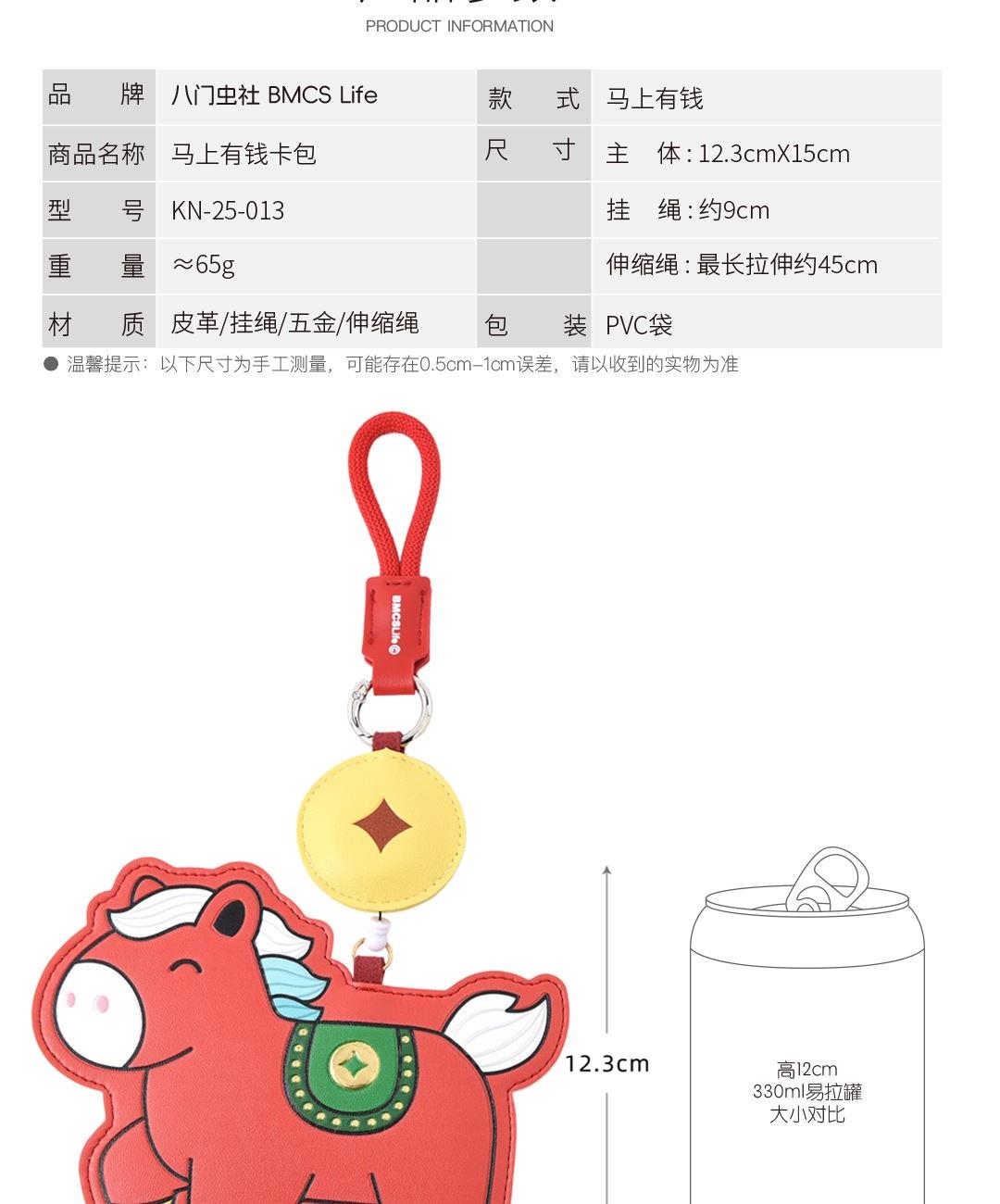 马上有钱(约12.3cmX15cm) 大小大概是一只掌心大小 产品可多功能使用 如做包挂挂件/卡包卡套 选料选用PU皮材质,耐磨耐用不易变形 内里填棉线,柔软有弹性 做工上精致的缝合走线,牢固不脱线 挂件边缘皮革手工多边打磨,不毛糙,经久耐用