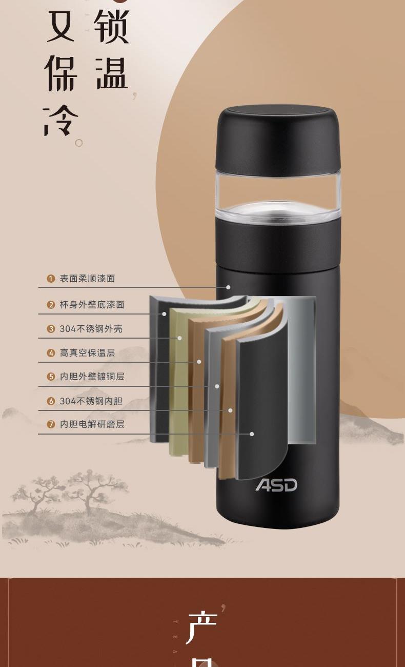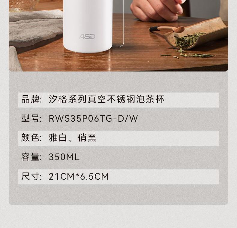 爱仕达RWS35P06TG-W汐格系列真空不锈钢泡茶杯