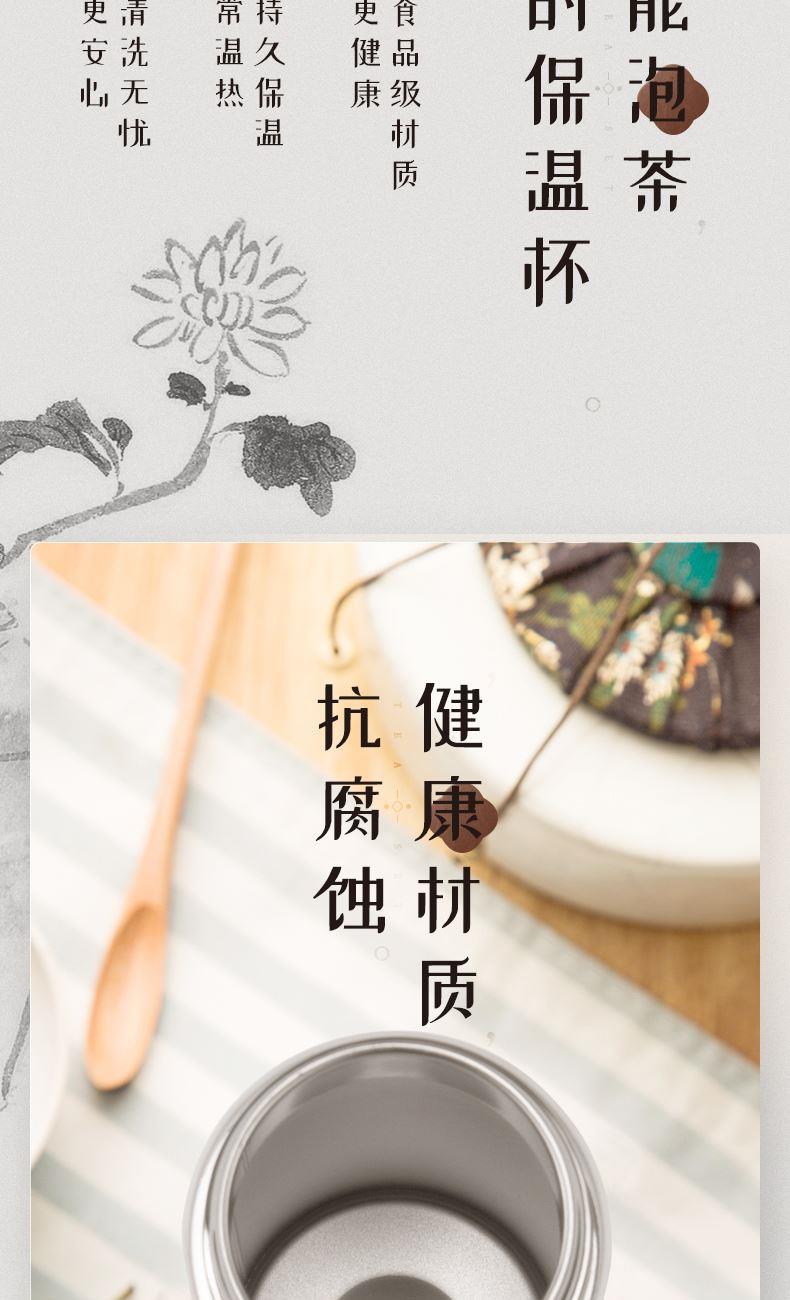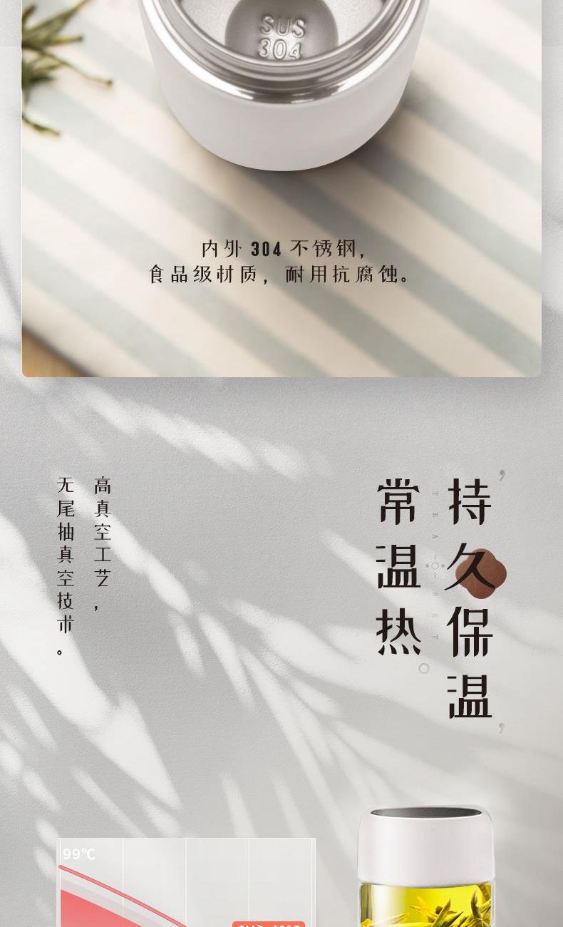 材质 - 304不锈钢 规格 - 350ML 内箱 - 72*72*223mm 外箱 - 460*315*243mm 净重 - 7.6 kg 毛重 - 9.4kg 条码 - 6921880719179 茶水分离 长效保温 304健康材质 清洗方便