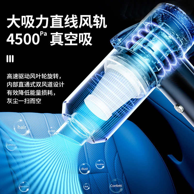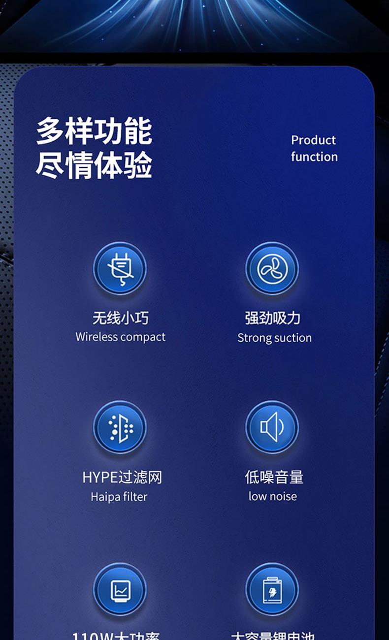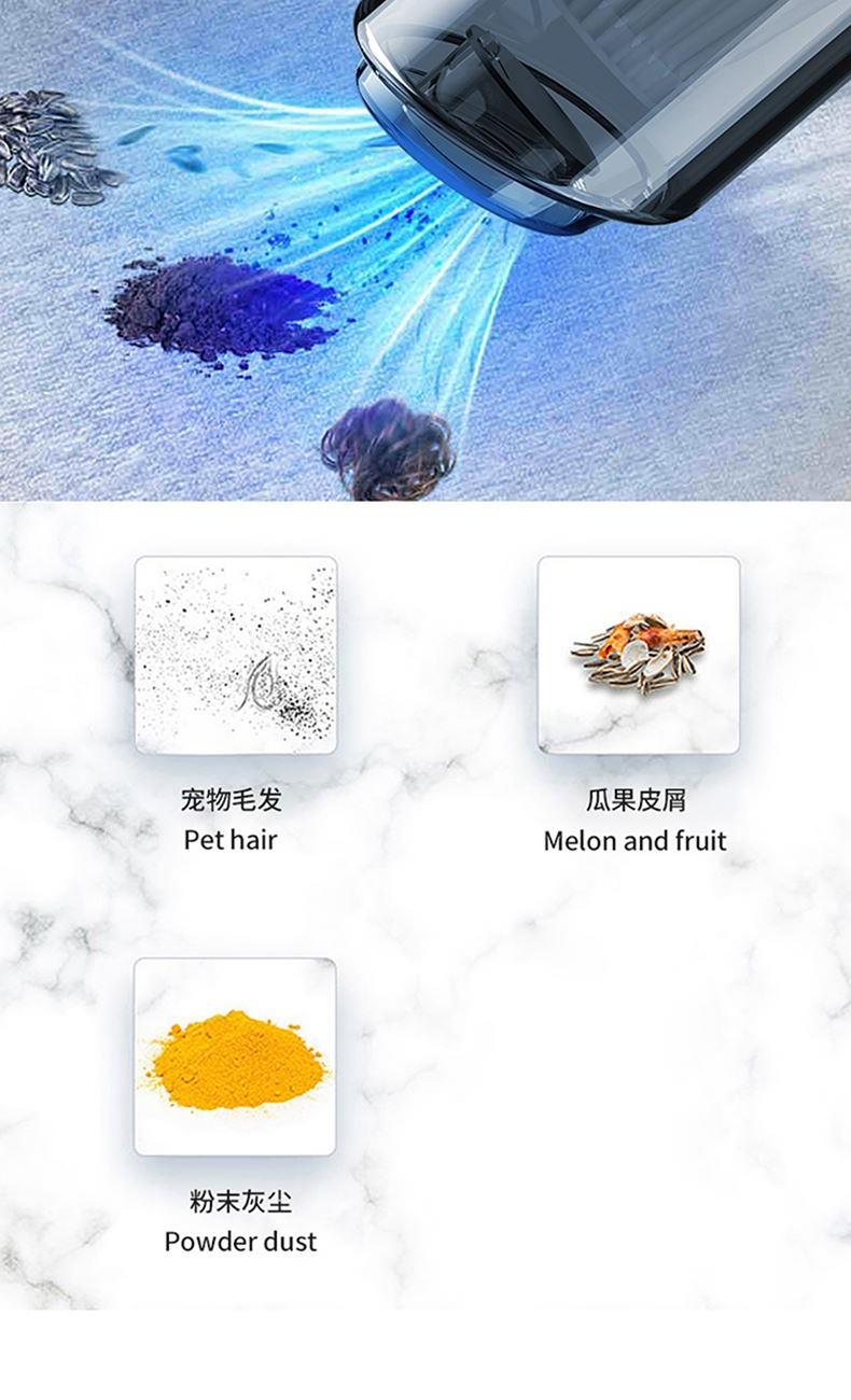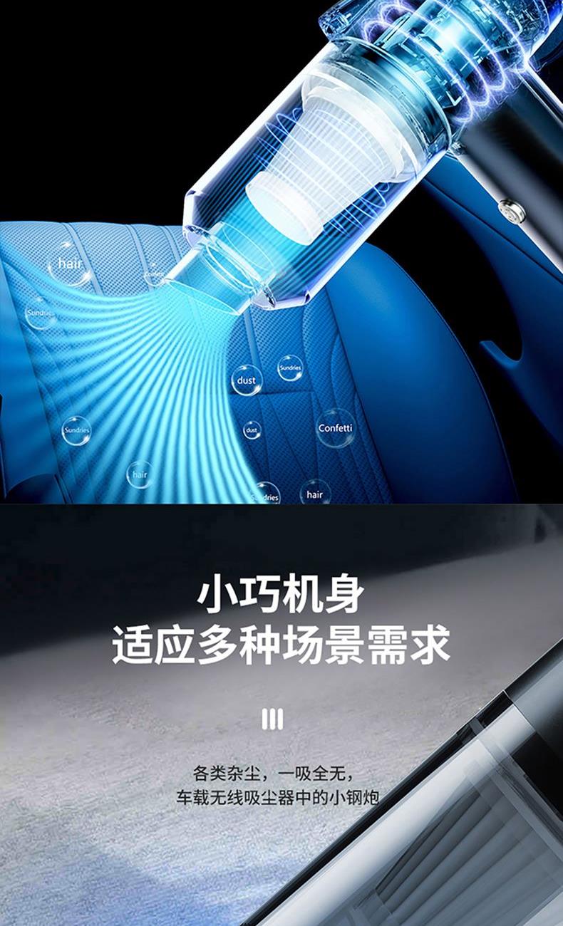 包装尺寸:190*177*75mm 外箱包装:725*395*475mm 包装材料:彩包 输出电压:7.4V~ 输入电压:5V 功 率:120W 电池容量:1800毫安 单台毛重:0.458kg 单台净重:0.4kg 毛发清洁无死角 可水洗过滤网 120W大功率,家车两用