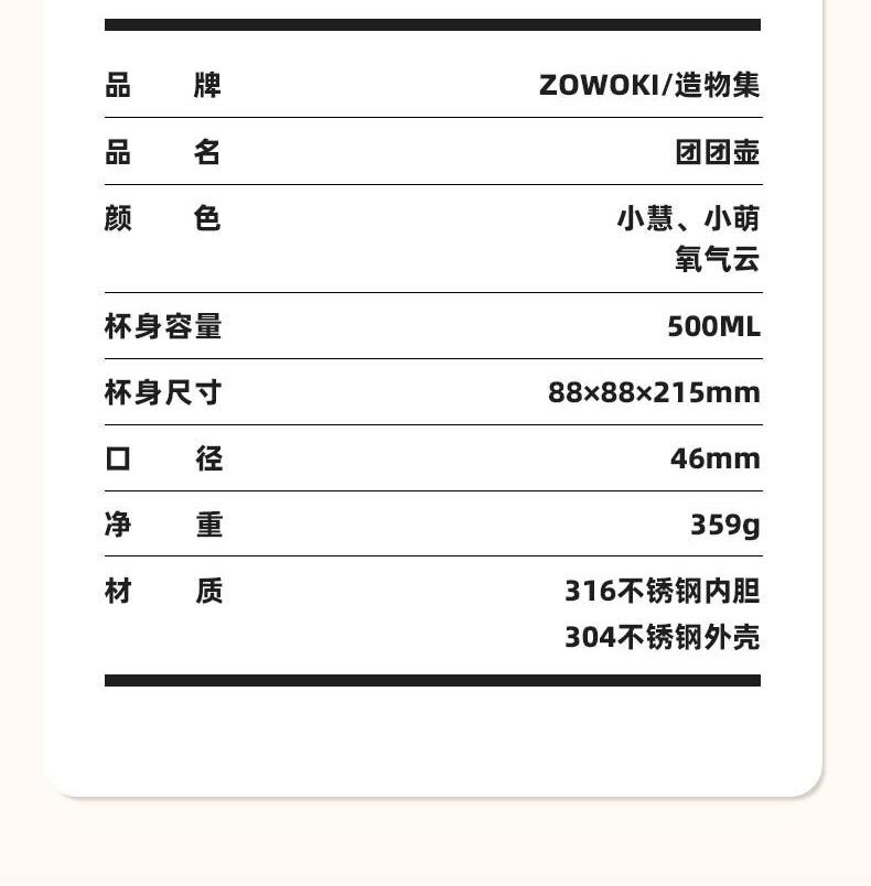 容量:500ml|净重:359g口径:46mm材质:316不锈钢(内胆)304不锈钢(外壳)PP(杯盖)产品尺寸:80mm*80mm*201mm