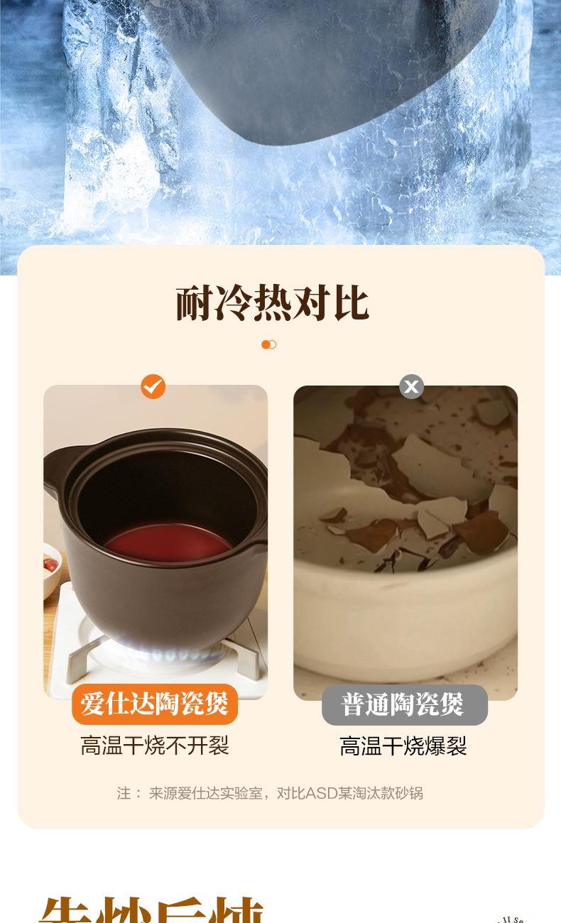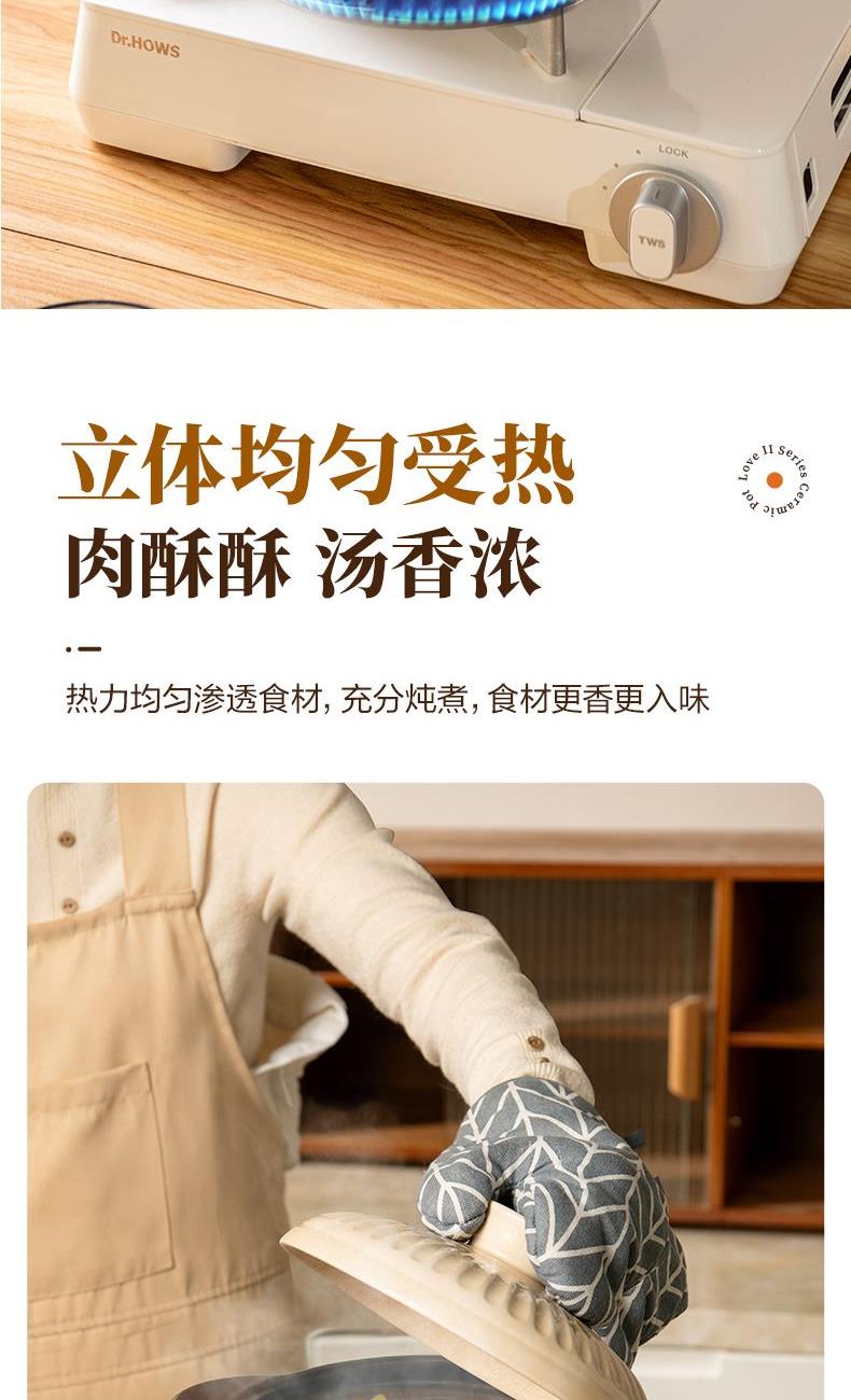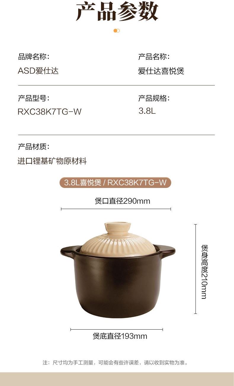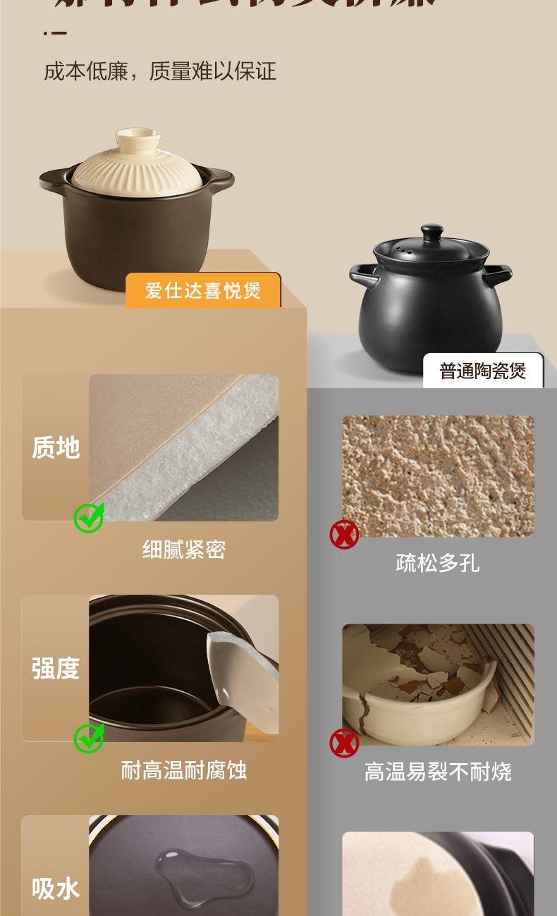 材质 – 耐热陶土 规格:3.8L 内箱 – 320*320*26 mm 外箱 - / mm 净重 – 16.8 kg 毛重 – 18.5 kg 1、进口锂基矿物原料,可承受450-20°的温差,耐酸碱性好,健康安全;2、下沉式锅盖,紧贴煲身防外溢3、、一体式防滑手柄,使用更安全;4、一煲多用熬炖煲焖