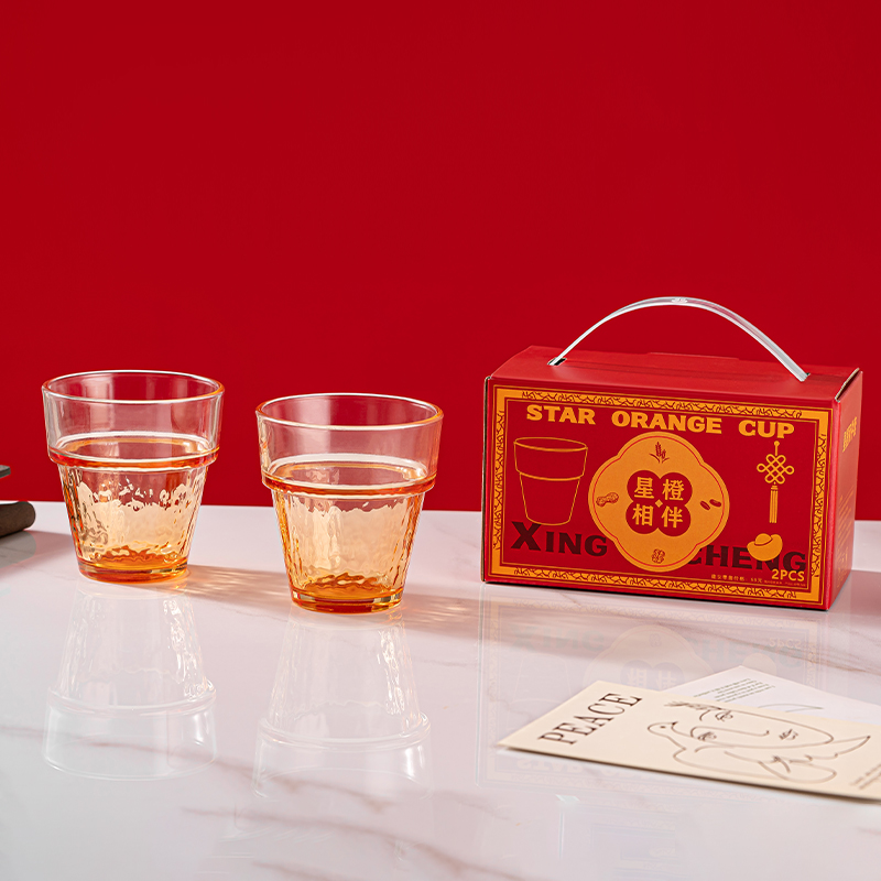 货号:A-XC/L2 星橙两件套(橙色/烟灰) 规格:48套 组合:杯*2(180ml) 产品卖点:星橙玻璃杯,加厚玻璃材质,圆润杯口贴合唇感,饮用顺滑,厚底防滑稳固,放置桌面稳如磐石,「活力橙」与「雅致烟灰」两款配色,橙色如暖阳点亮餐桌,烟灰似墨韵沉淀质感,简约线条勾勒现代美学,适配北欧风、轻奢风等多种家居风格,轻松融入生活场景,一手可握,独饮尽兴、共饮温馨 彩盒尺寸:14.7*8.1*8.8CM 外箱尺寸:46.2*34.6*37.4CM 重量:17.1KG