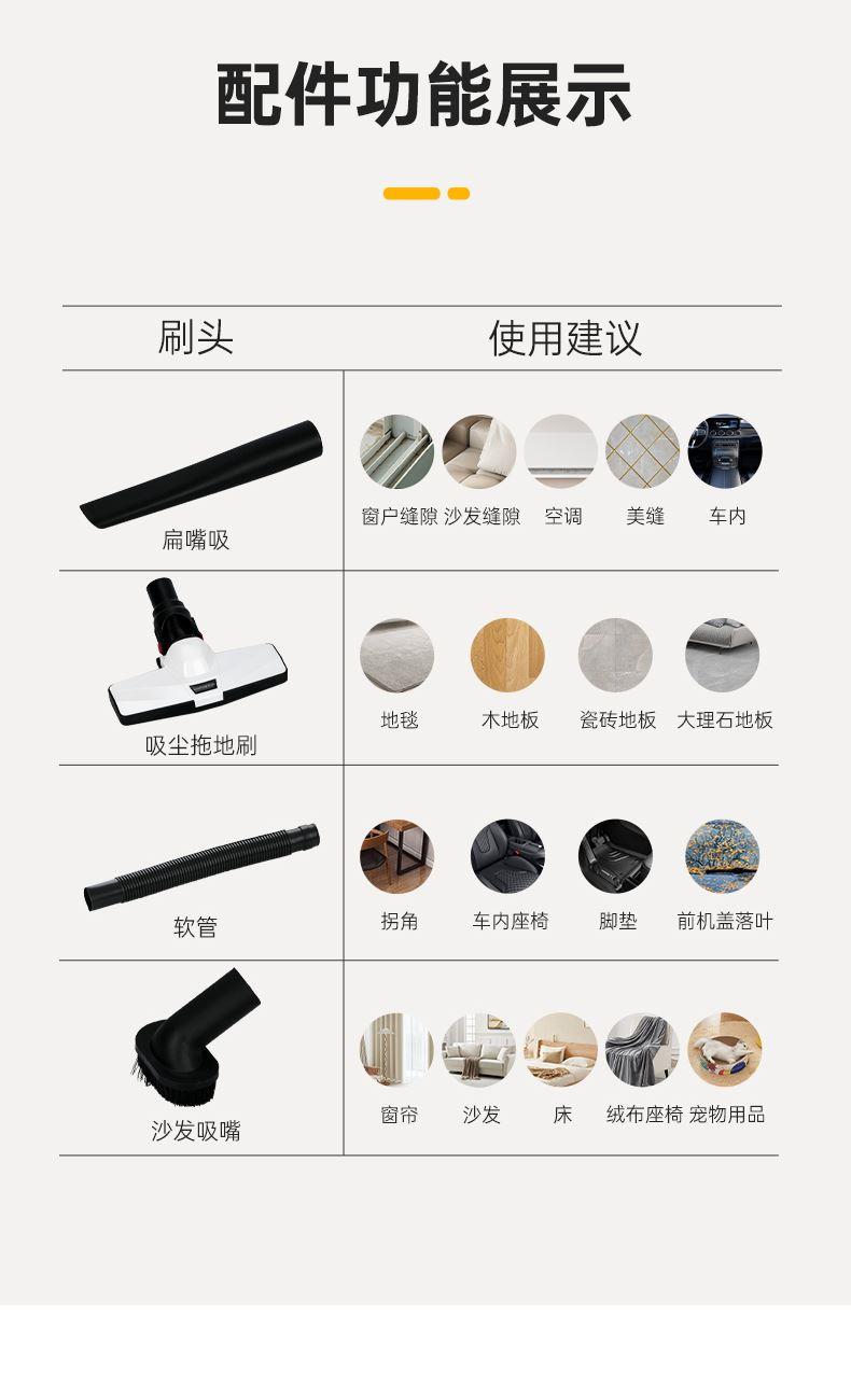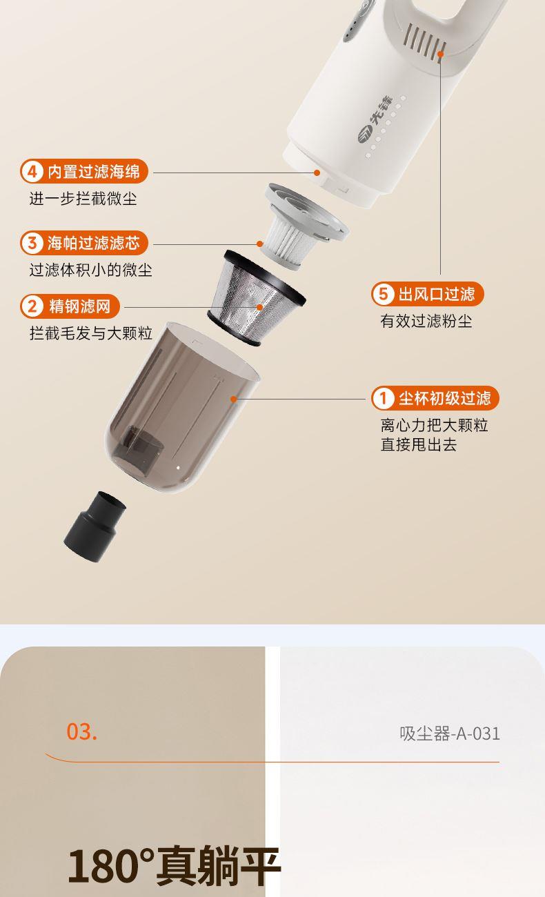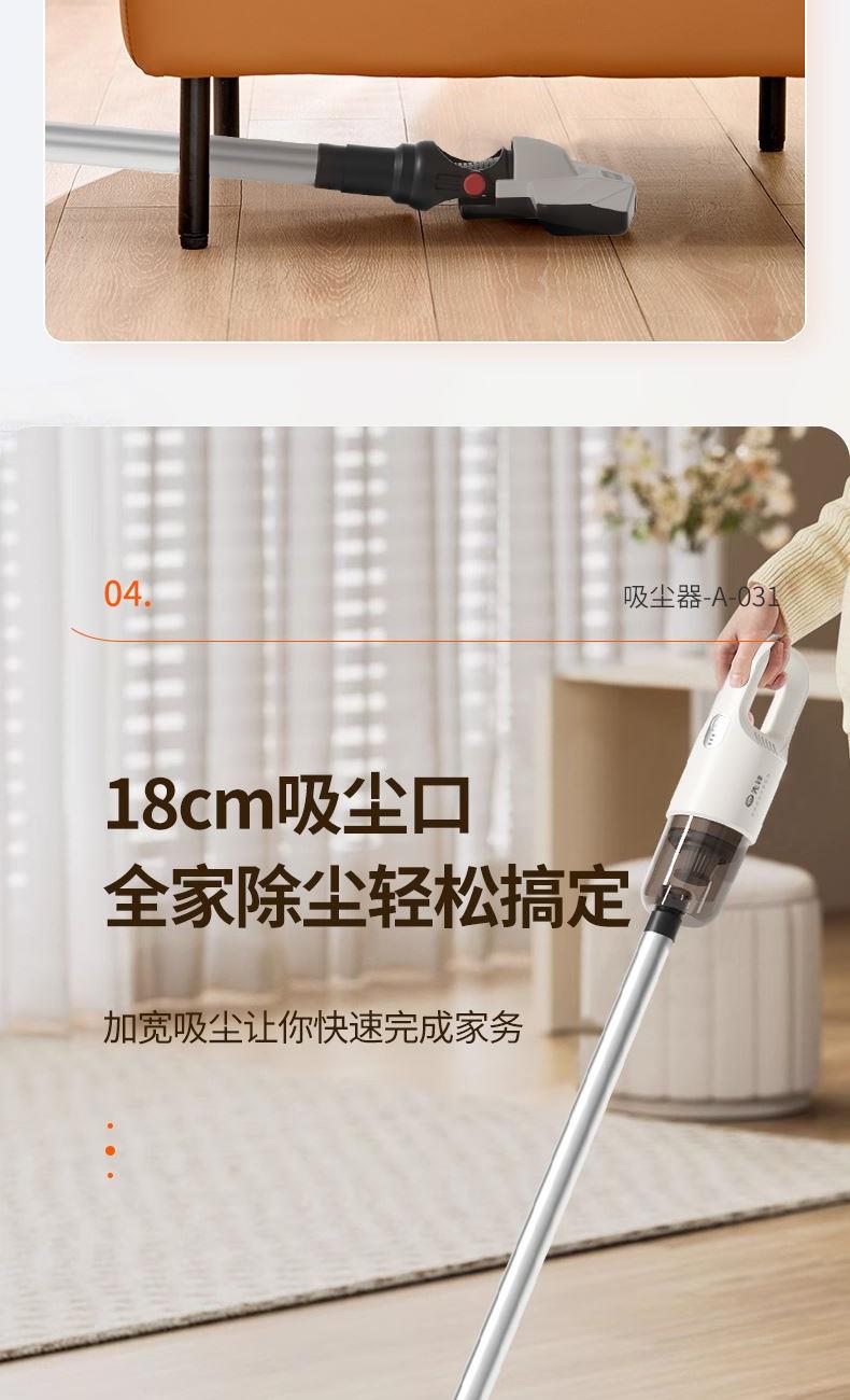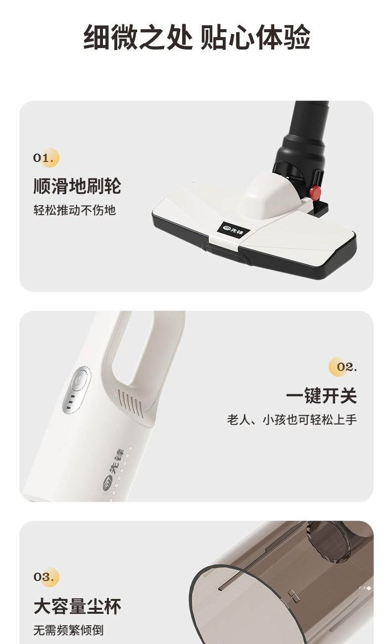 产品尺寸:89*89*350mm 彩包尺寸:621*99*225mm 大外箱尺寸:635*465*520mm 单台净重:0.96kg 单台毛重:1.60Kg 充电输入:5V--2A 额定功率:110W 包装材料:彩盒+大外箱 产品条码:6977197070953 尘杯、滤芯可拆洗,更洁净,重复使用经济实惠 | 一键启动运转,操作简单 | 方便拿握手,轻量机身好上手 | 收纳方便不占地 |多种刷头随意更换,立式手持随意切换。