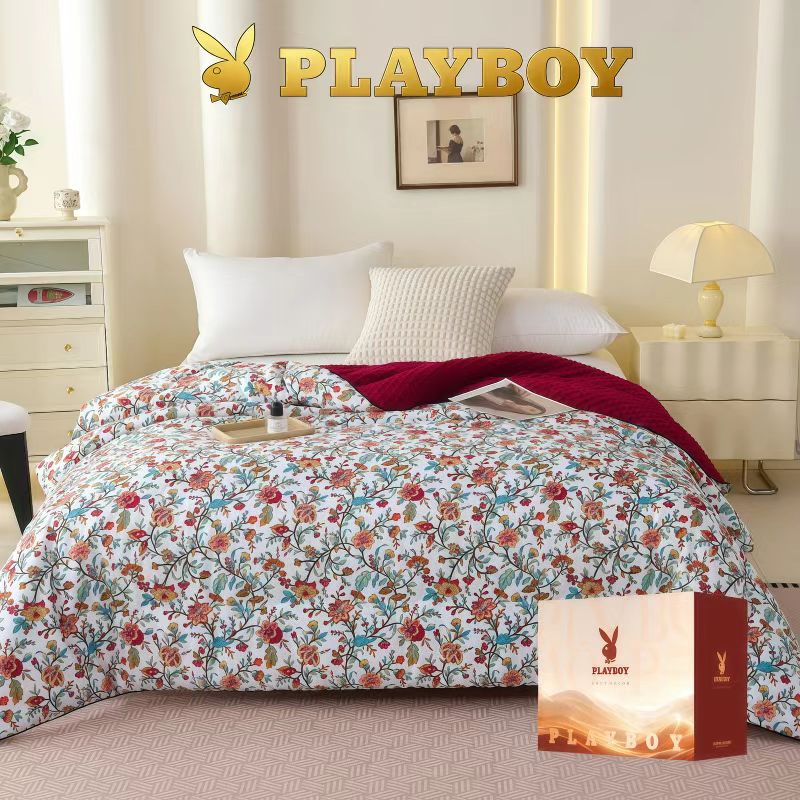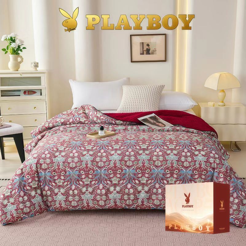 花花公子-家纺-全棉豆豆绒秋冬保暖被芯被子-国潮牡丹