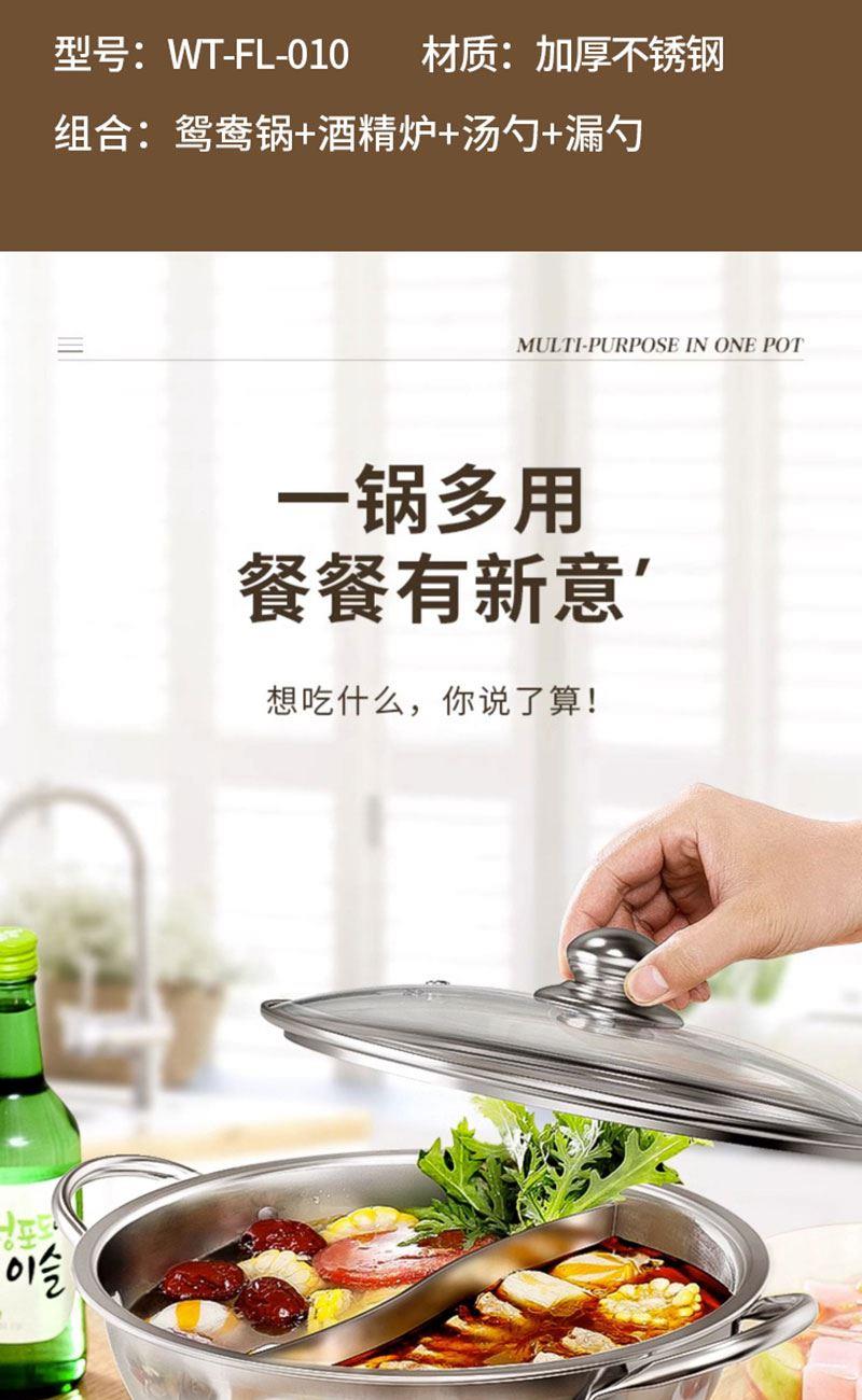 【产品规格】:火锅*1+漏勺*1+汤勺*1+酒精炉*1