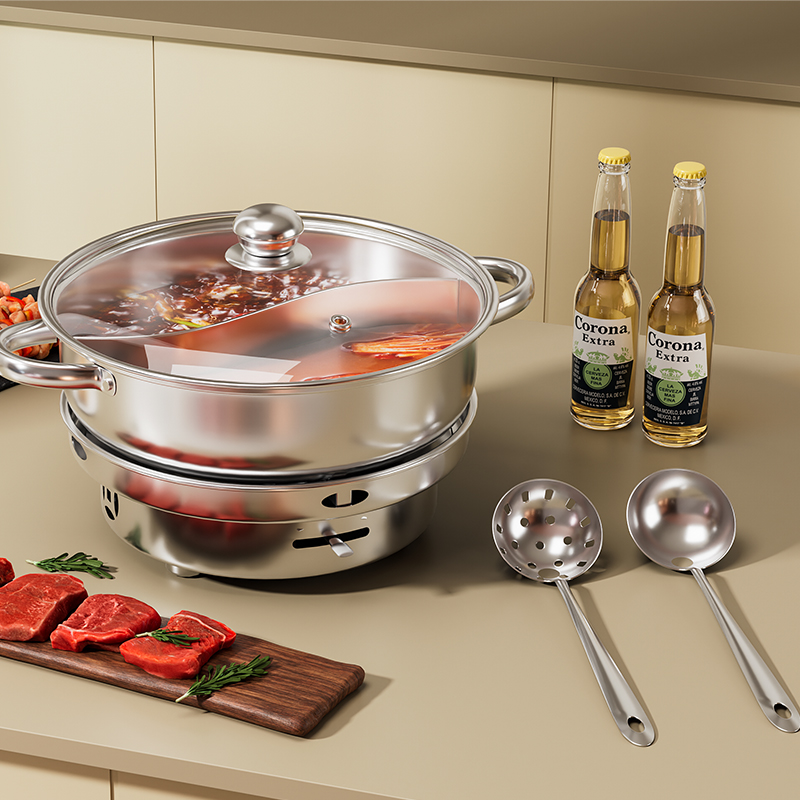 不锈钢汤锅采用优质不锈钢材质,具有优异的耐腐蚀性和耐高温性,能够长时间保持表面光洁如新,不易生锈或变形。其材质特性使其在长期使用中依然坚固耐用,适合频繁的烹饪需求