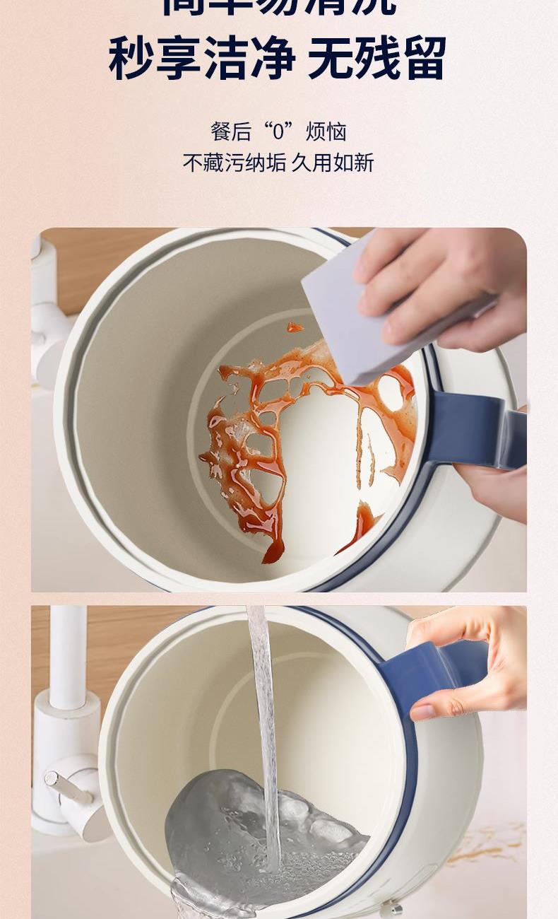 1.8L大容量, 陶瓷釉不沾涂层内胆 ,带沥糖锅 | 花样功能:蒸、煮、炖、涮、火锅等多种功能于一身,满足从早餐到晚餐的饮食需求 | 304不锈钢二合一盖碗,既是盖也是碗 | 双重温控保护,安全放心 | 防烫舒适手柄, 握感舒适。