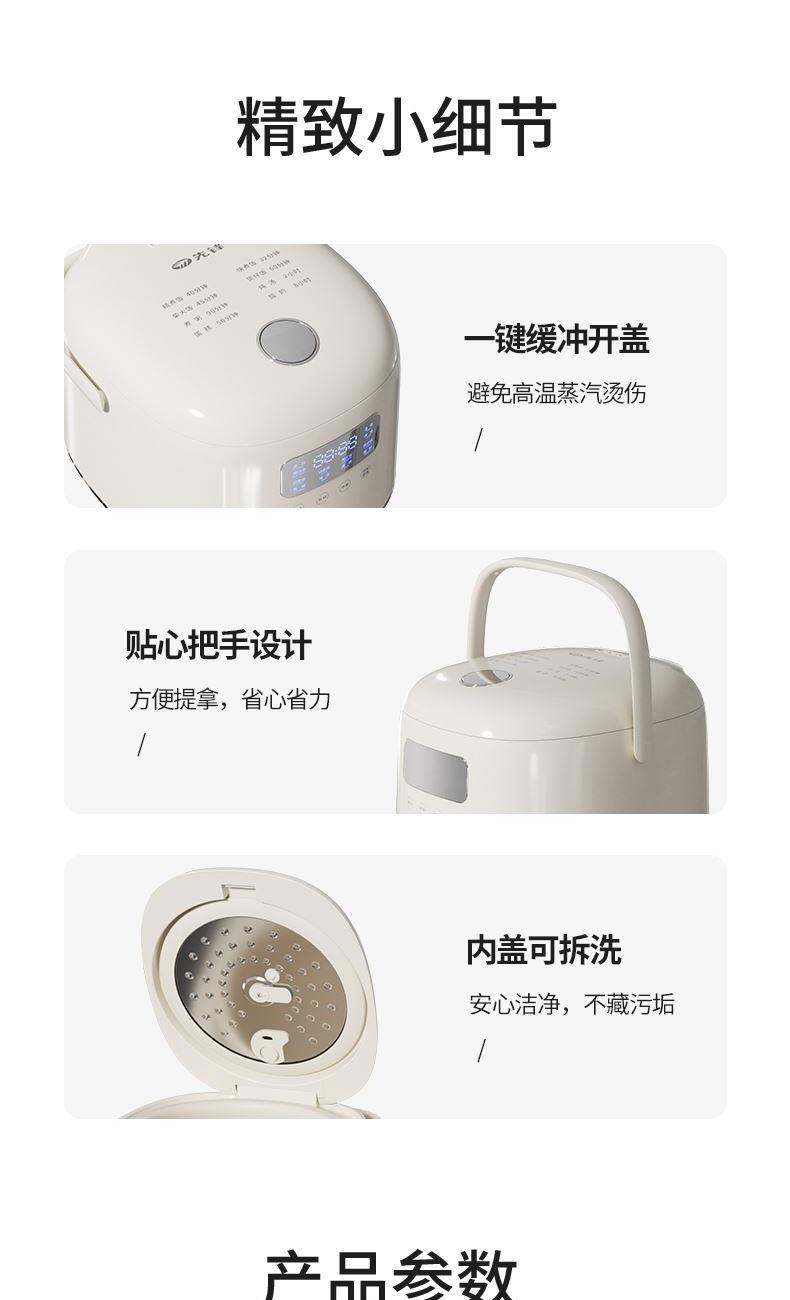彩包尺寸:338*288*255mm 黄包尺寸:350*300*275mm 控制方式:电脑版 包装材料:彩包+黄包 额定电源:220V~ 额定频率:50Hz 额定功率:500W 单台毛重:3.8kg 单台净重:3.4kg 容 量:2.8L ✪上下双传感器,精控火候 ✪ 创新球釜,浅黄色不粘陶瓷油,清洗更省心 ✪ 一机8功能,随心所用,可拆卸缸盖,轻松清洗,24小时预约,省事更省心