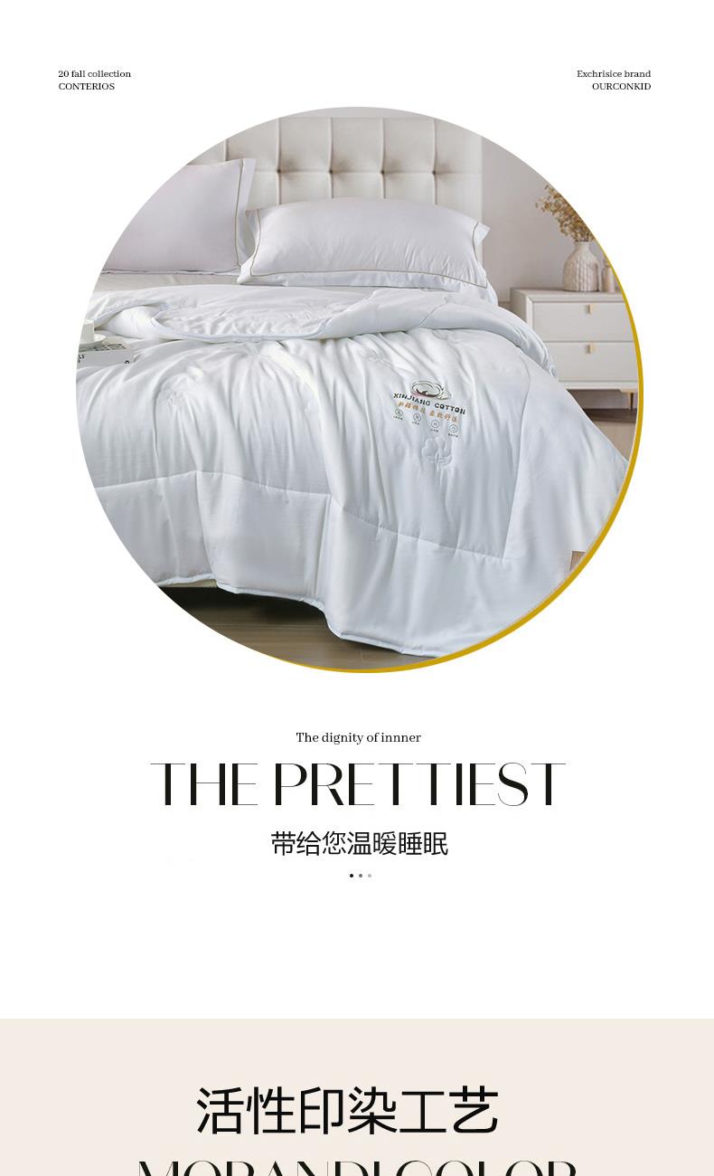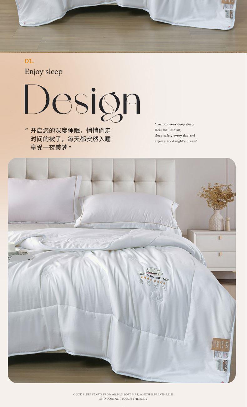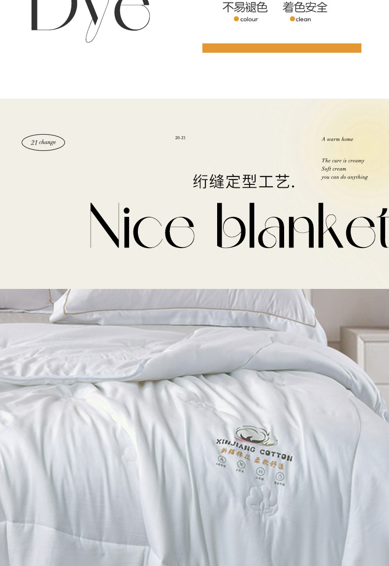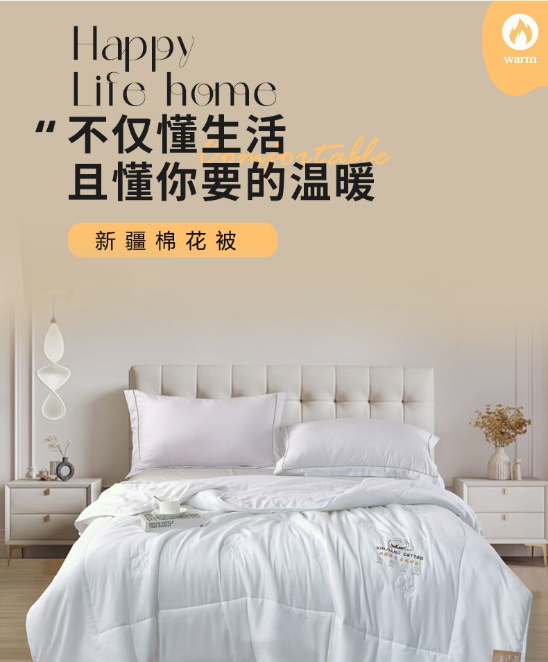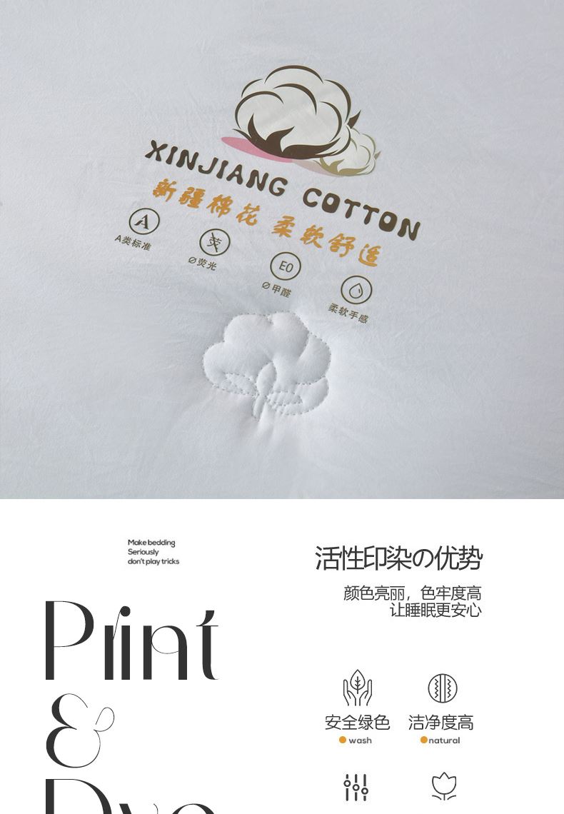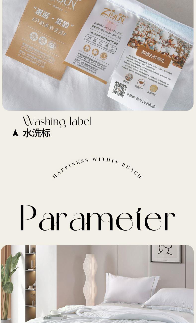 产品规格:200cm*230cm*1 面料成份:水洗棉 填 充 物:棉花/羽丝棉 克 重:2100g 产品说明:水洗棉面料细腻柔软,宠溺肌肤带来整夜酣睡好眠; 闻得到的棉花味,娇肤感知自然柔软像睡在柔软的云层中,气息清新自然,健康环保。