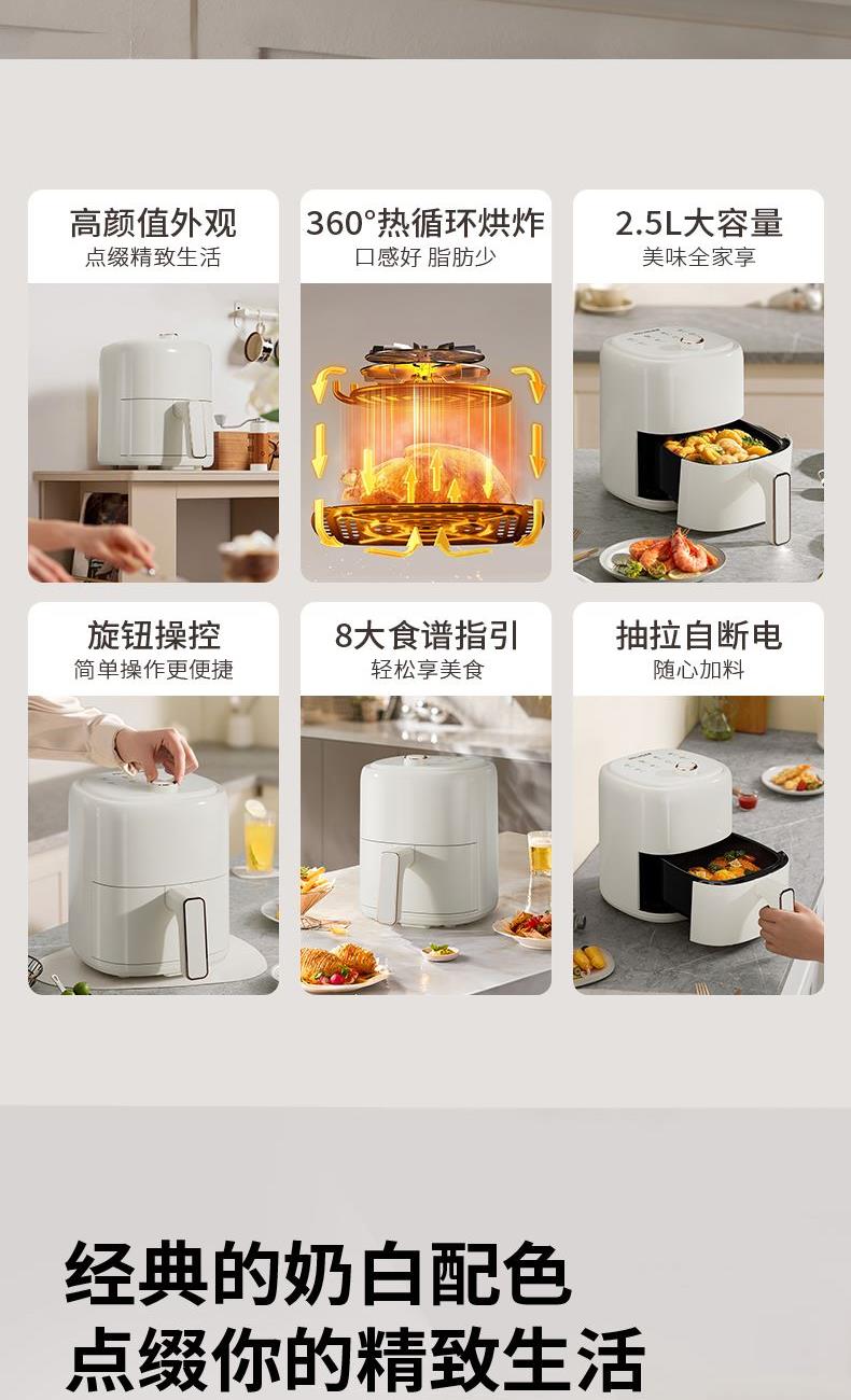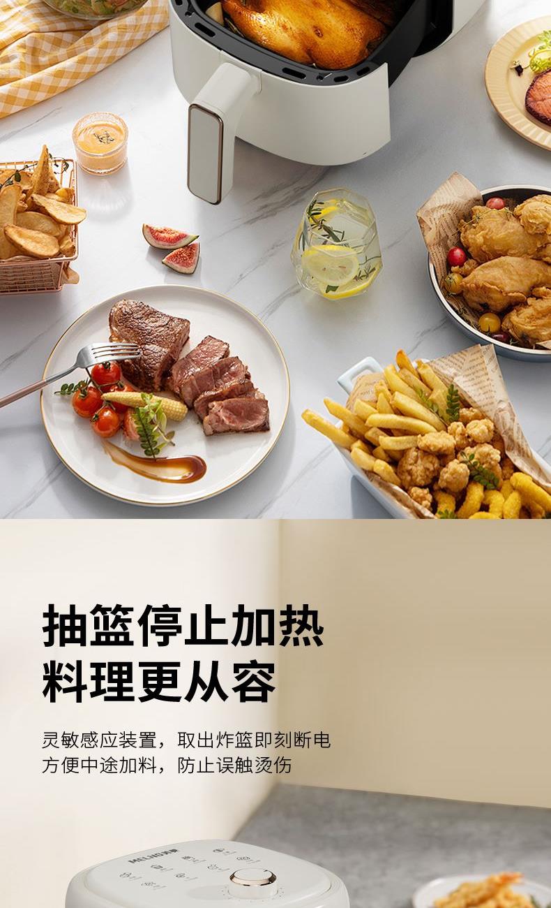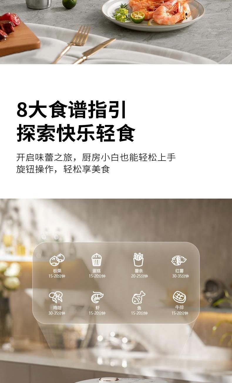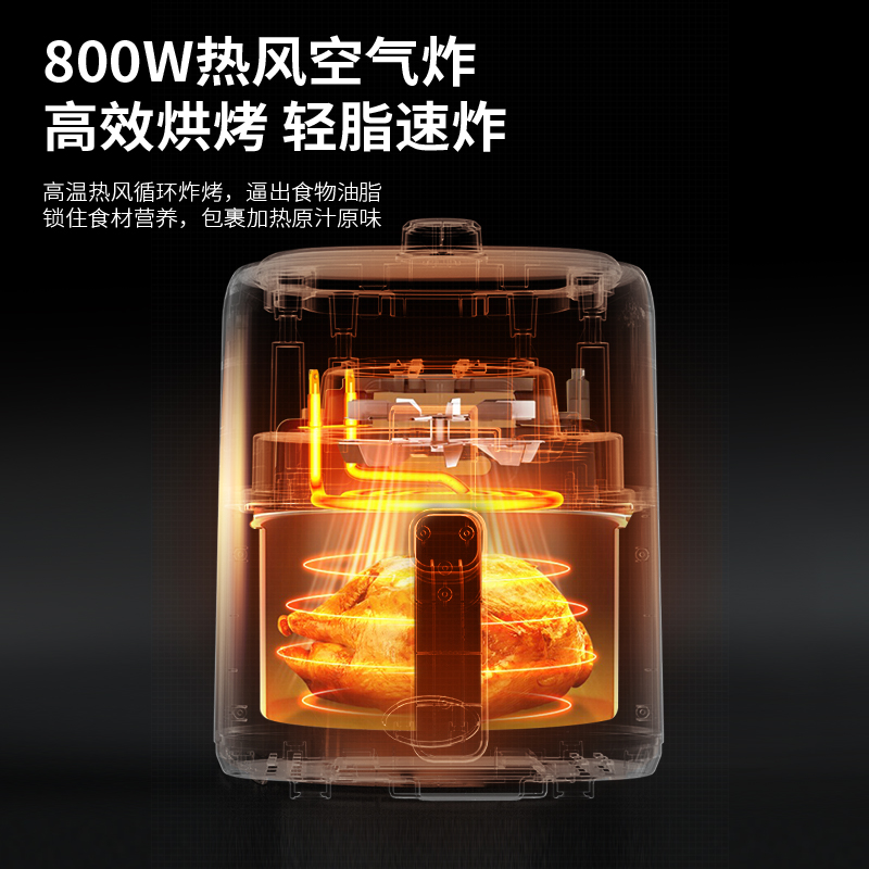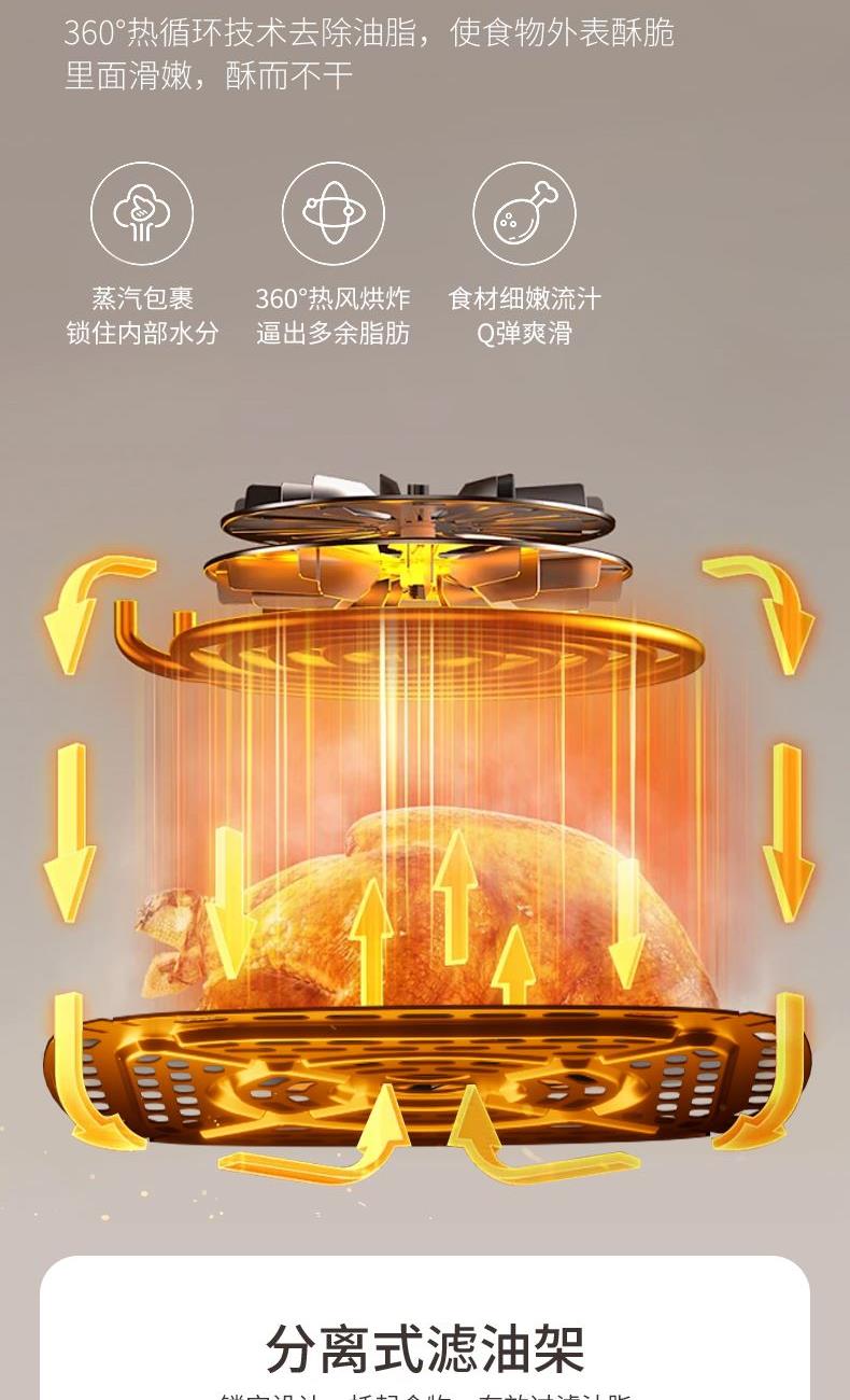 不粘锅,方便快速清洗 | 健康烹饪,可在不滴油的情况下进行烧烤,烘烤,煎烤,减少油脂摄入 | 360°热循环技术去除油脂,口感好,脂肪少 | 酥制,使食物外表酥脆,里面滑嫩。