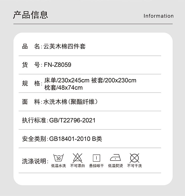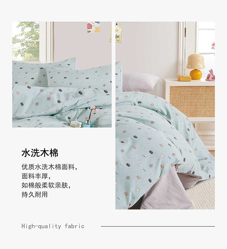 床单:230x245cm 被套:200x230cm 枕套:48x74cm 【面 料】水洗木棉(聚酯纤维) 产品特点: 1.升级款水洗木棉面料,轻柔糯绵,亲肤舒适; 2.活性印染,环保,花型立体,不褪色。