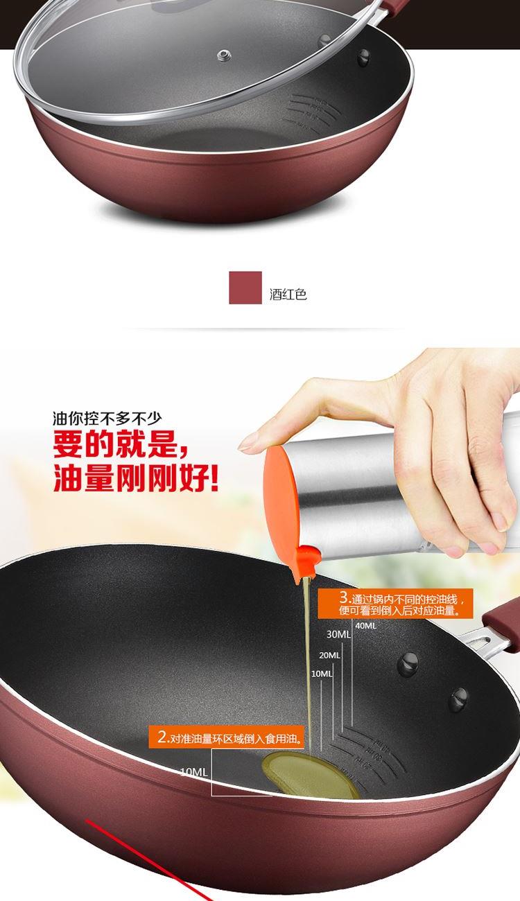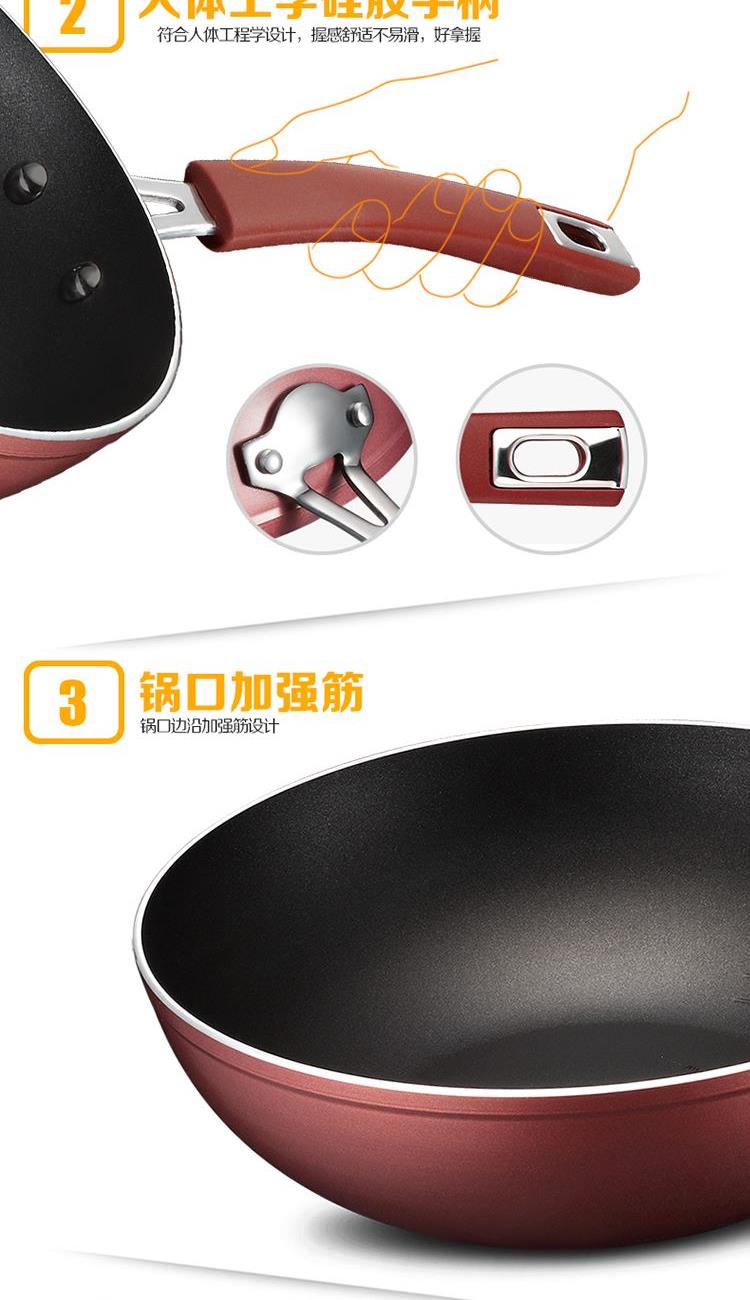 材质 - 铝合金 规格 - 30cm 内箱 - 515*360*140 mm 外箱 - 535*380*595 mm 净重 - 8.0kg 毛重 -11.3kg 优质合金基材 油你控设计 清新不粘涂层 明火电磁炉适用 色彩缤纷清新靓丽 防滑防烫胶木手柄 锅口加强筋设计 锅身大容量