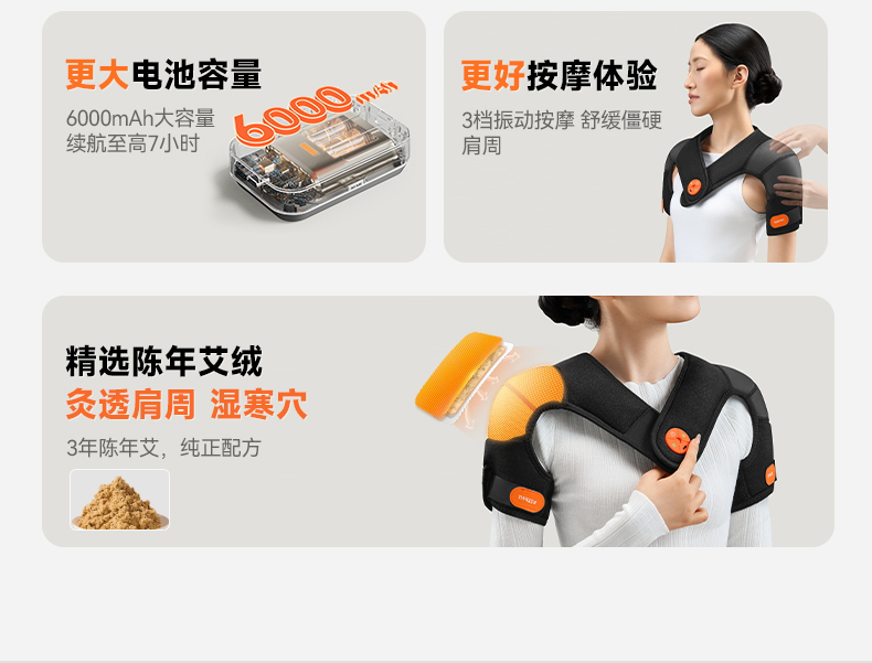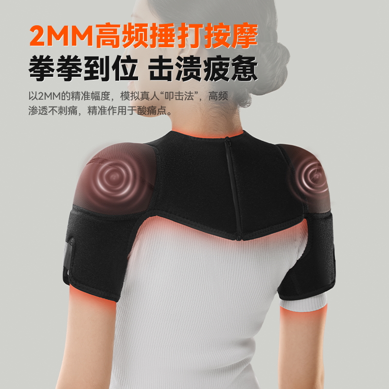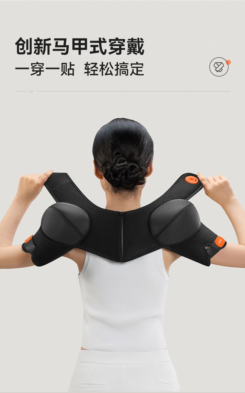 【巨能暖】16800mm²超大热敷面积,5秒速热,缓解酸痛一步到位 【多维按摩】2MM浮浪微振按摩,4个独立马达控制力度,刚柔有度 【材质介绍】外层OK布耐磨防泼水,中侧莱卡微弹面料贴合不移位,内层德绒亲肤锁温,冬季更暖 【版形设计】S/M双尺码+弹性布料,适配不同体型,佩戴无束缚感。